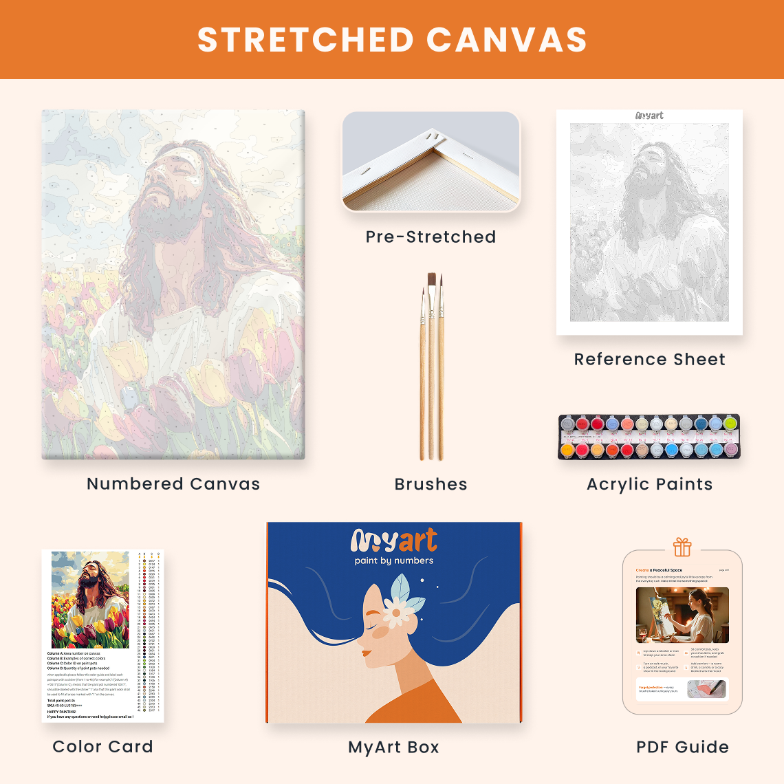 - Premium acrylic paint set (pre-mixed and numbered)