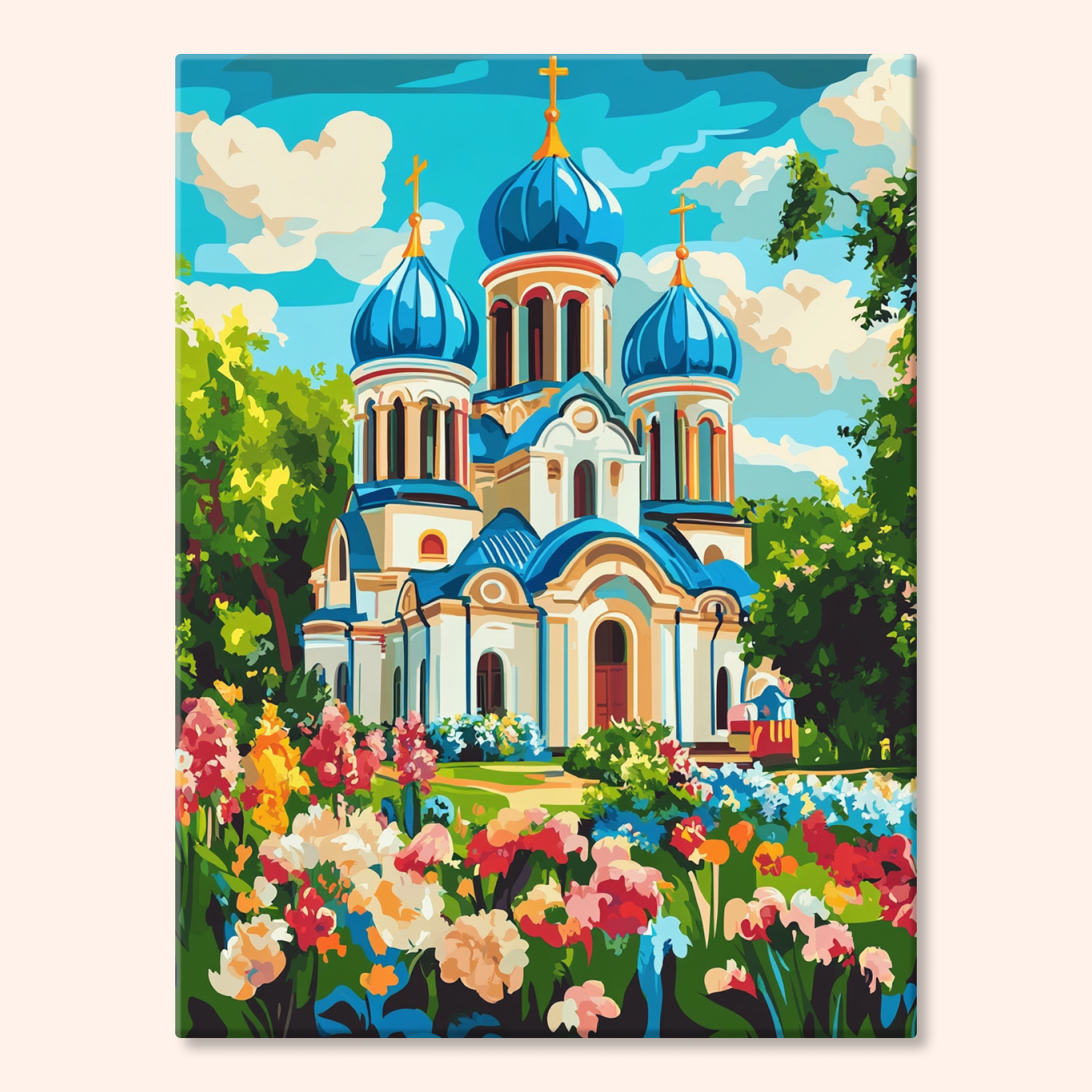 The canvas is pre-stretched on a wooden frame — ready to hang when finished.