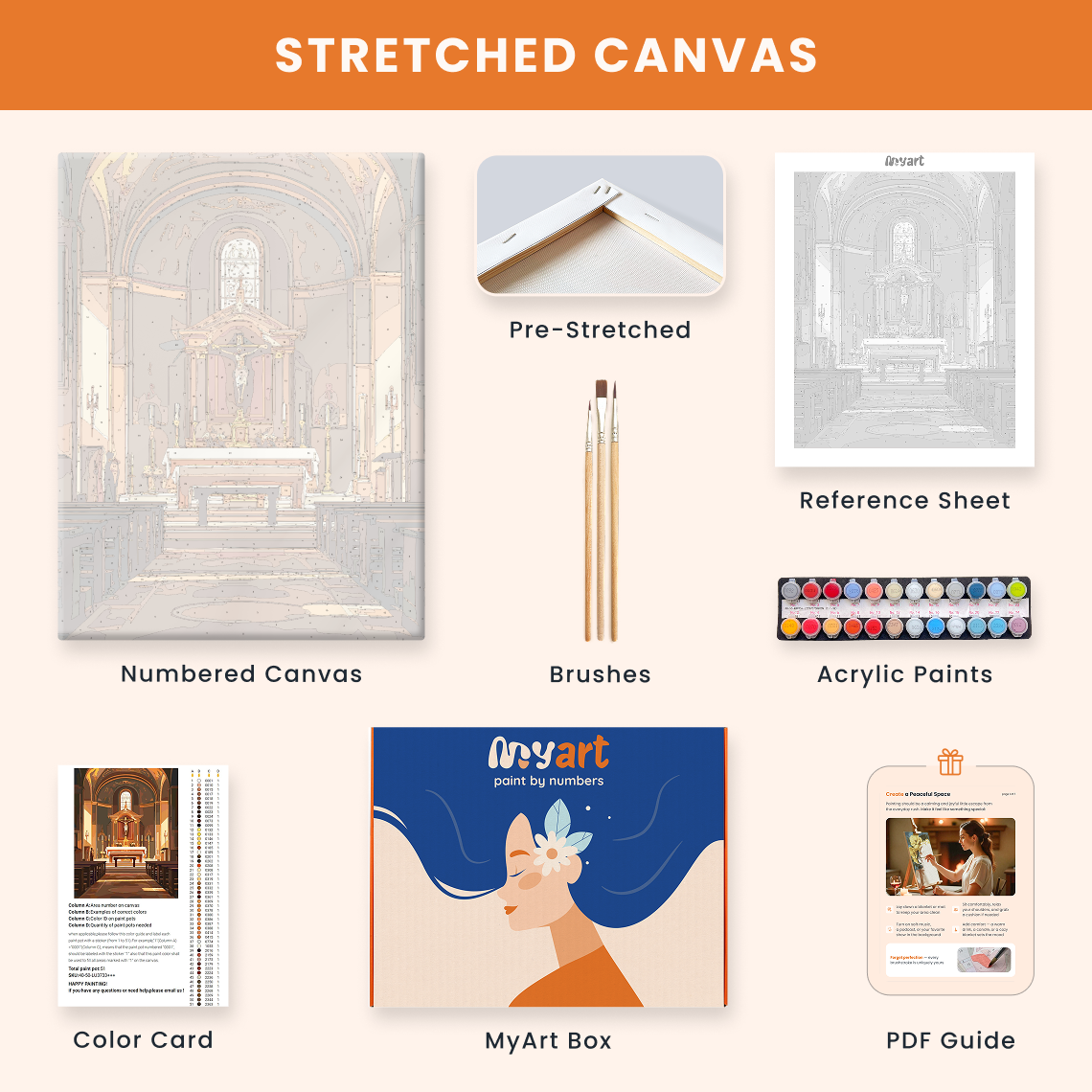 - Premium acrylic paint set (pre-mixed and numbered)