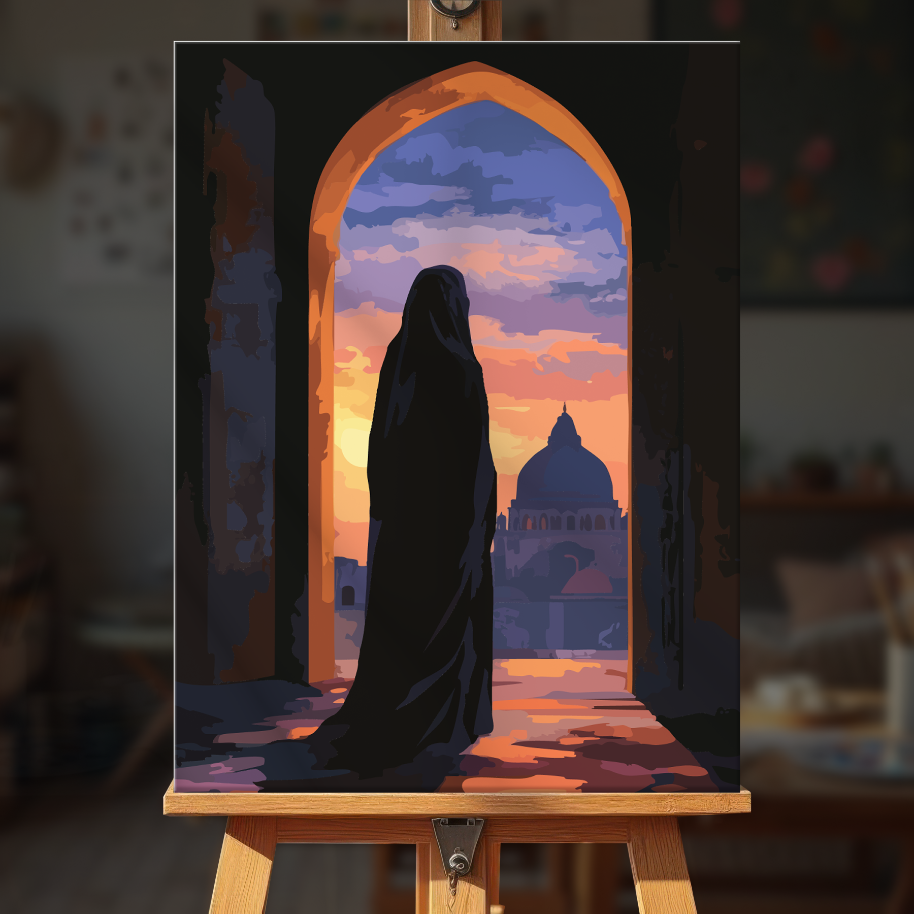 The canvas is pre-stretched on a wooden frame — ready to hang when finished.