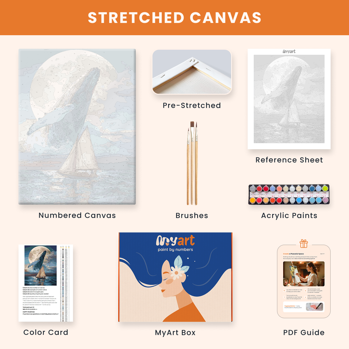 - Premium acrylic paint set (pre-mixed and numbered)