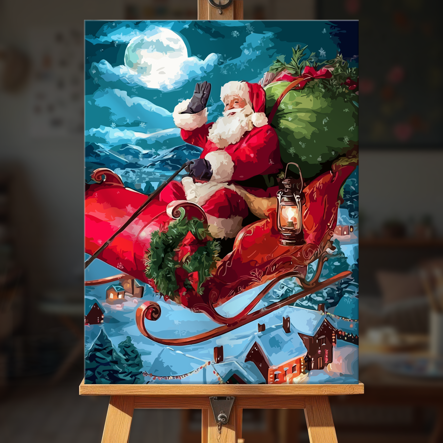 The canvas is pre-stretched on a wooden frame — ready to hang when finished.
