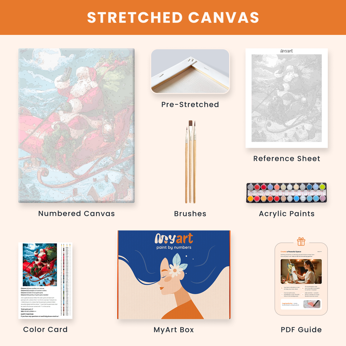 - Premium acrylic paint set (pre-mixed and numbered)