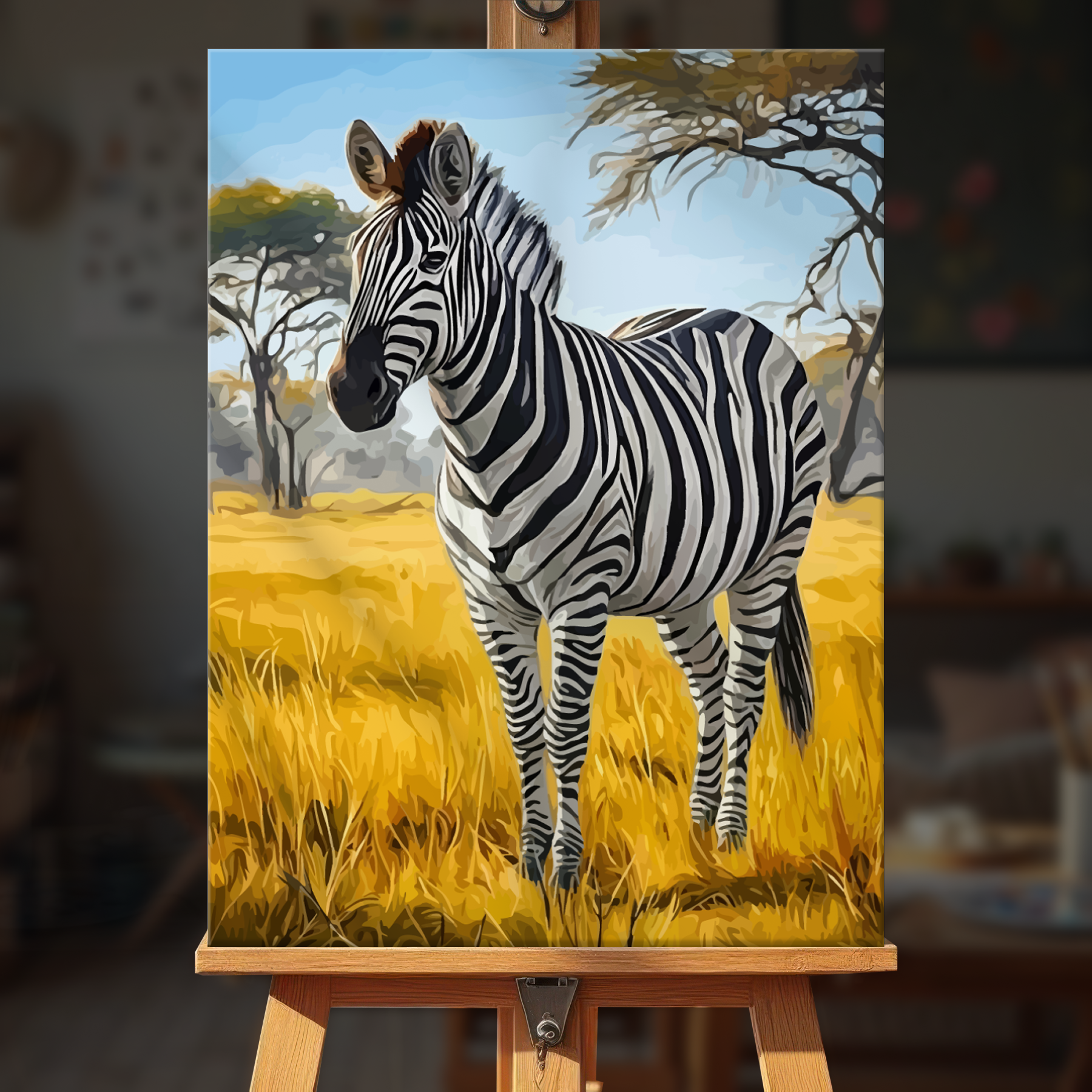 The canvas is pre-stretched on a wooden frame — ready to hang when finished.