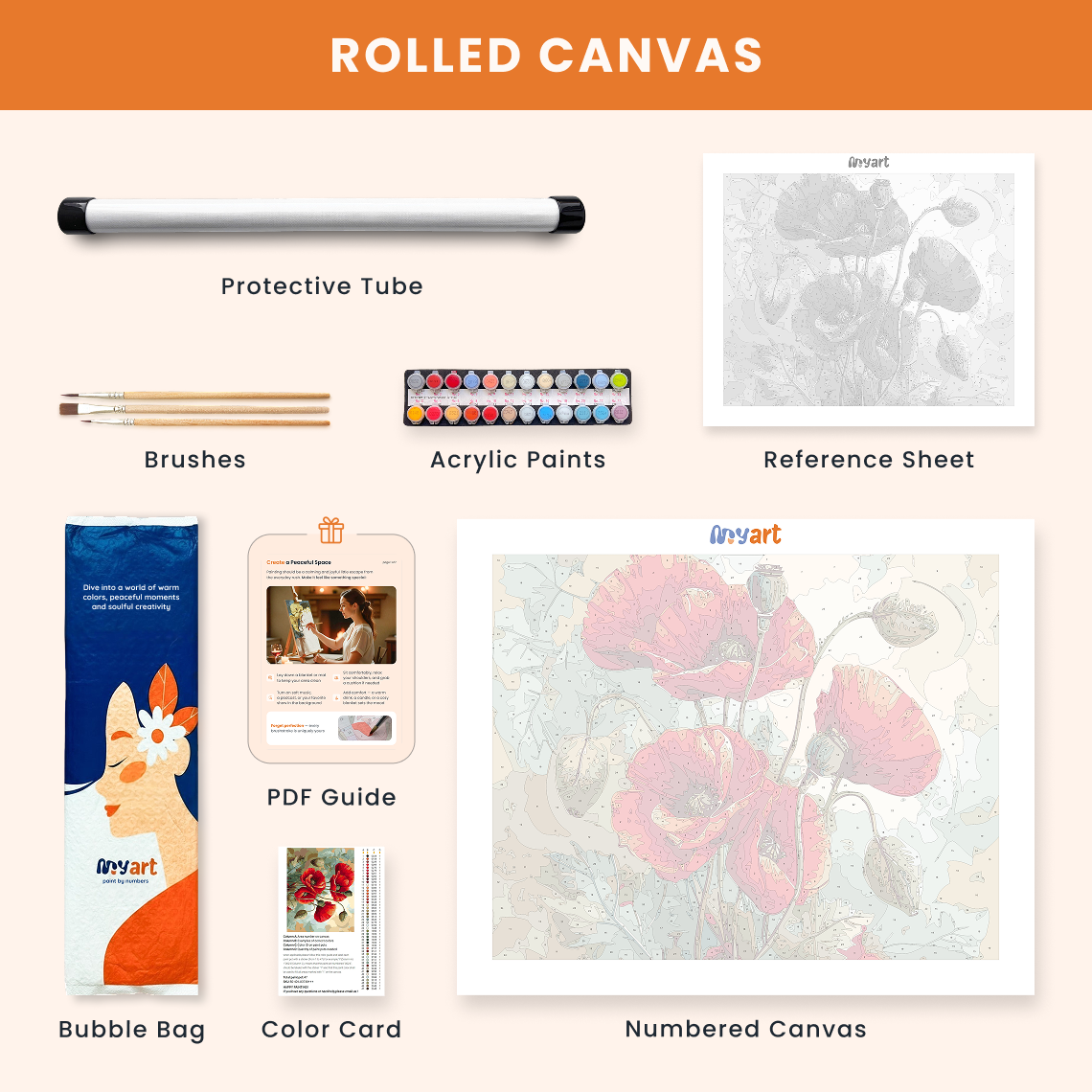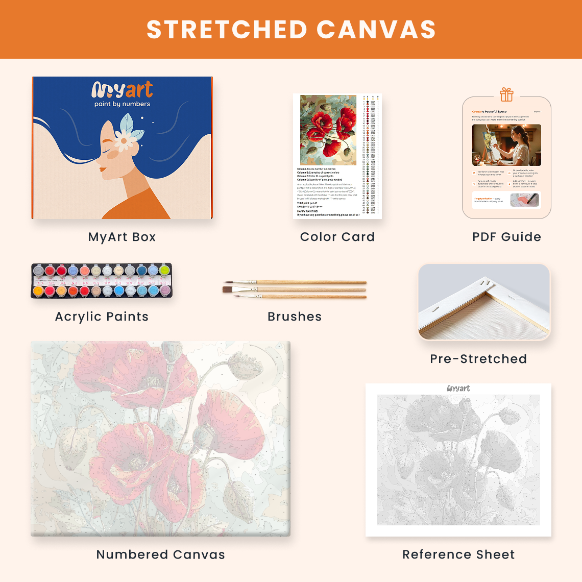 - Premium acrylic paint set (pre-mixed and numbered)