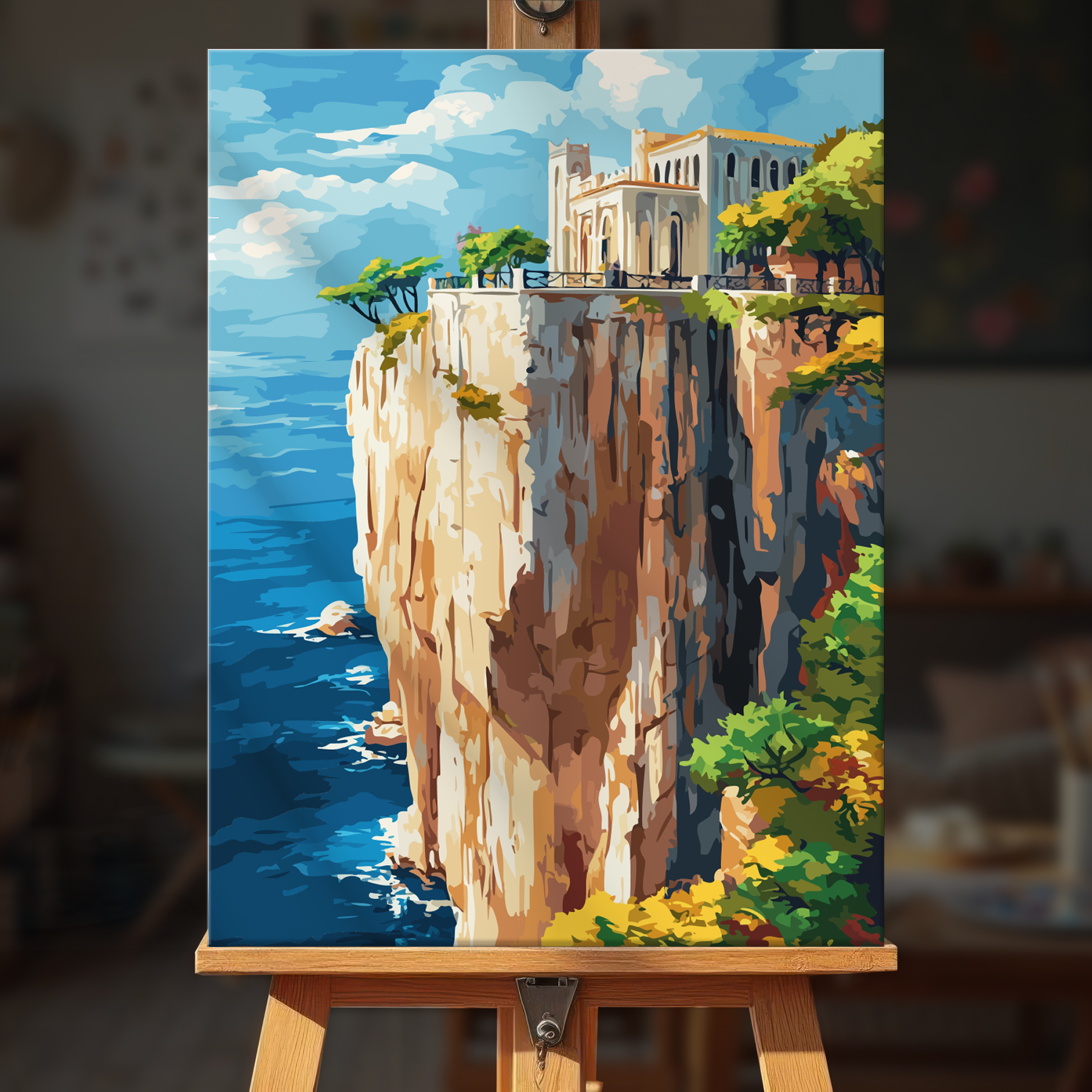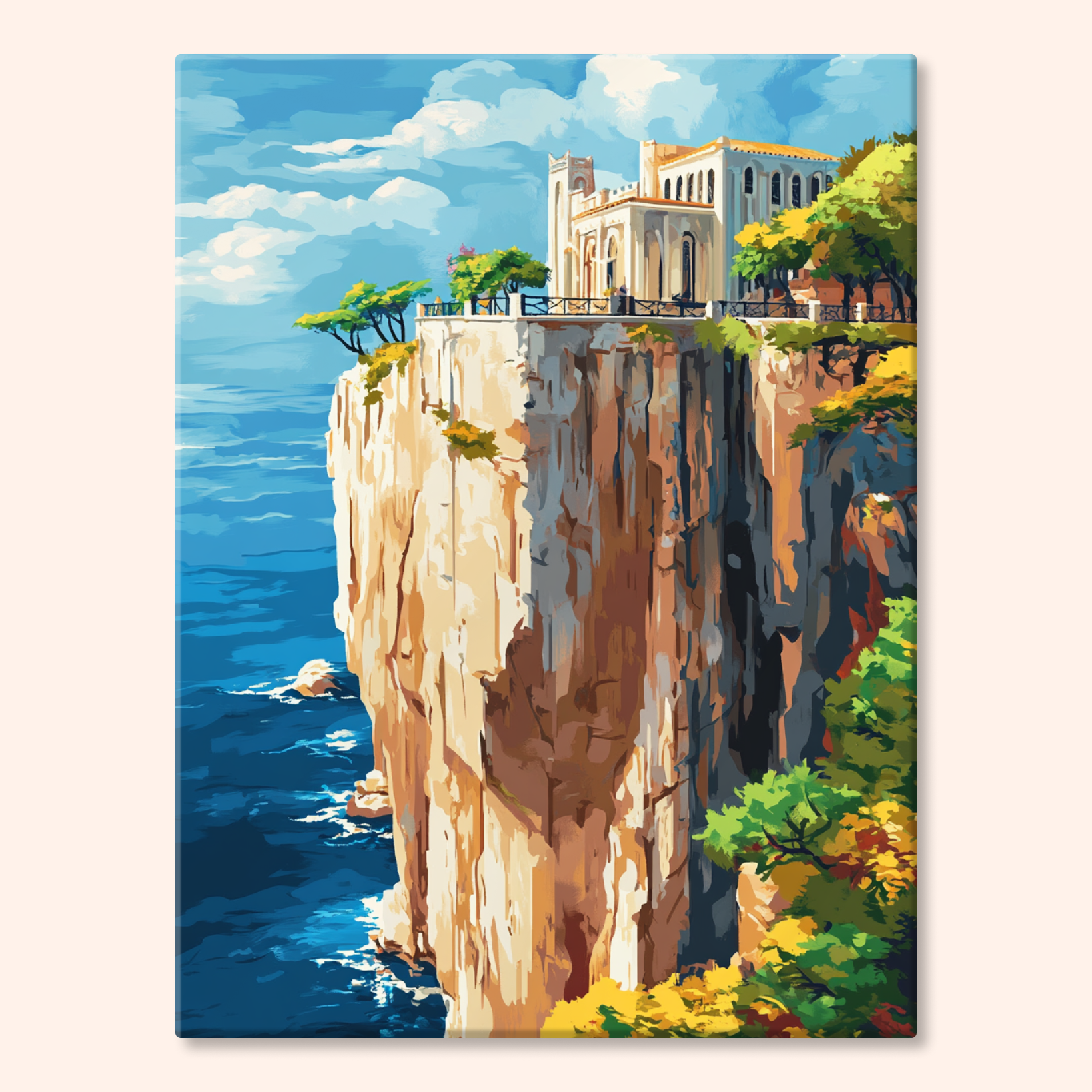 The canvas is pre-stretched on a wooden frame — ready to hang when finished.