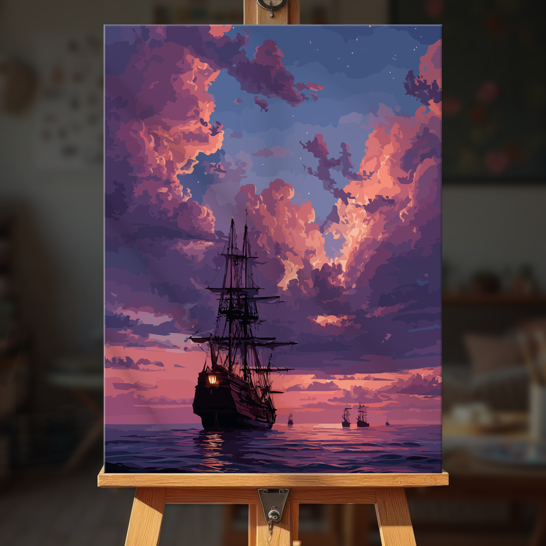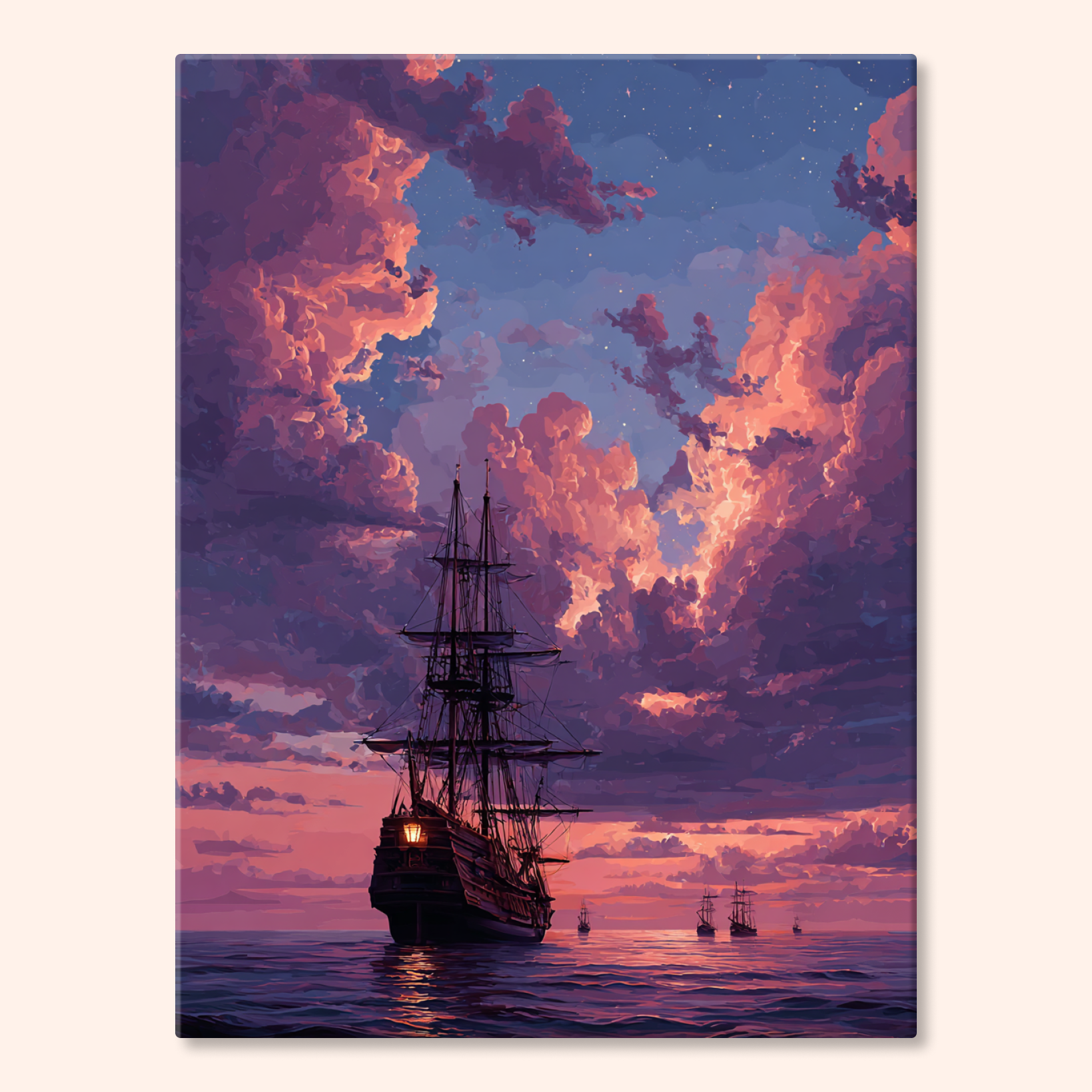 The canvas is pre-stretched on a wooden frame — ready to hang when finished.