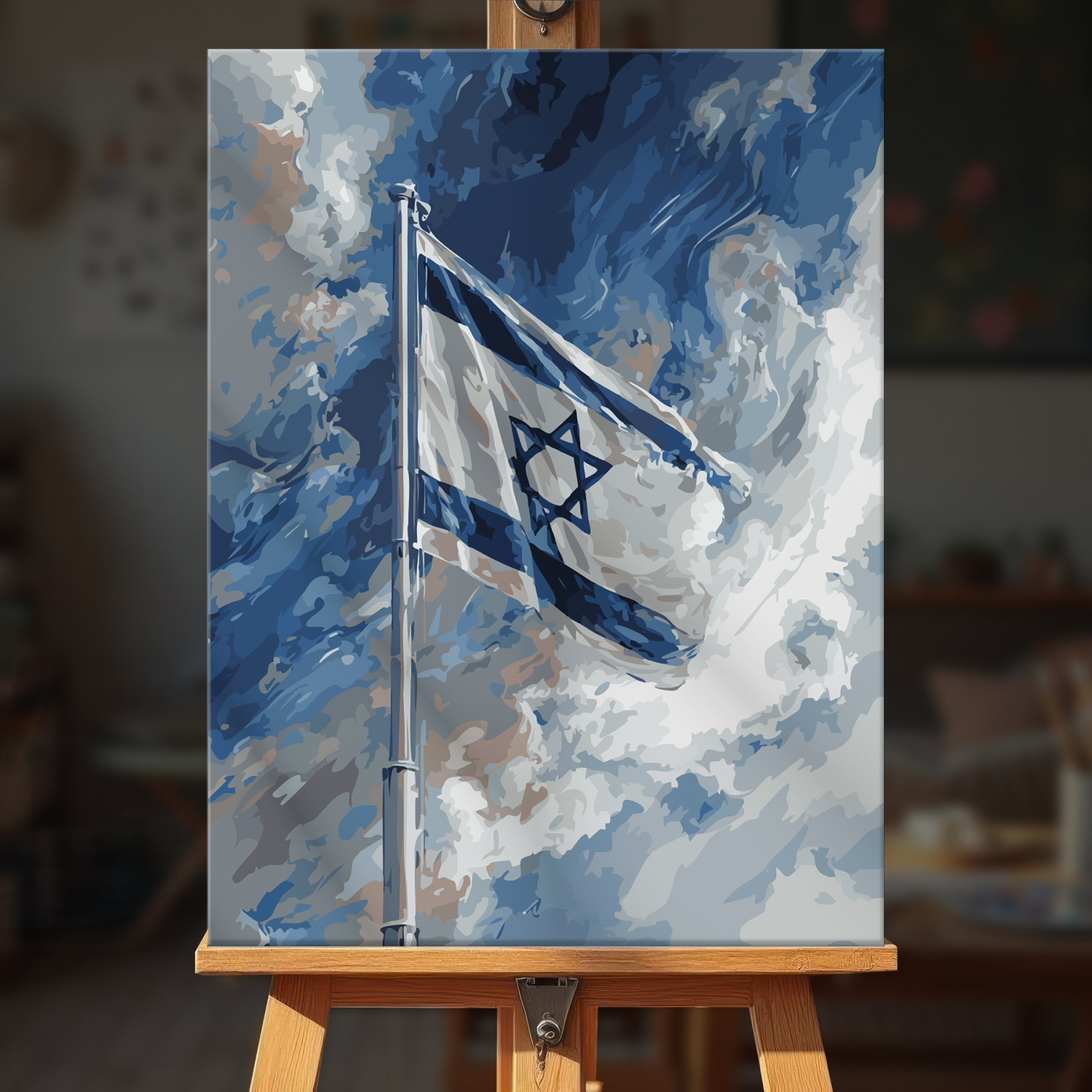 The canvas is pre-stretched on a wooden frame โ ready to hang when finished.