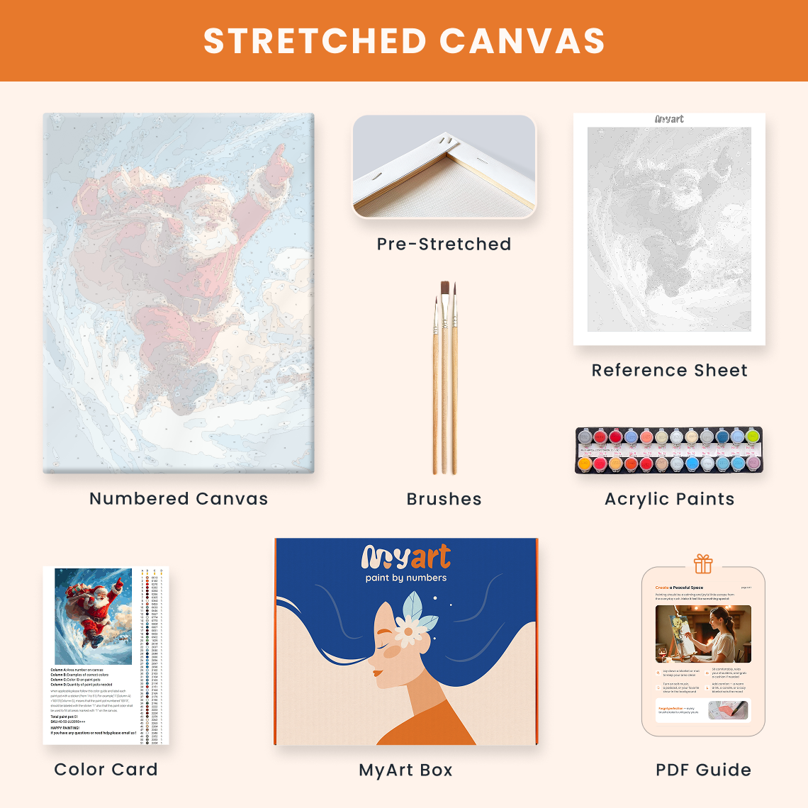 The canvas is pre-stretched on a wooden frame — ready to hang when finished.