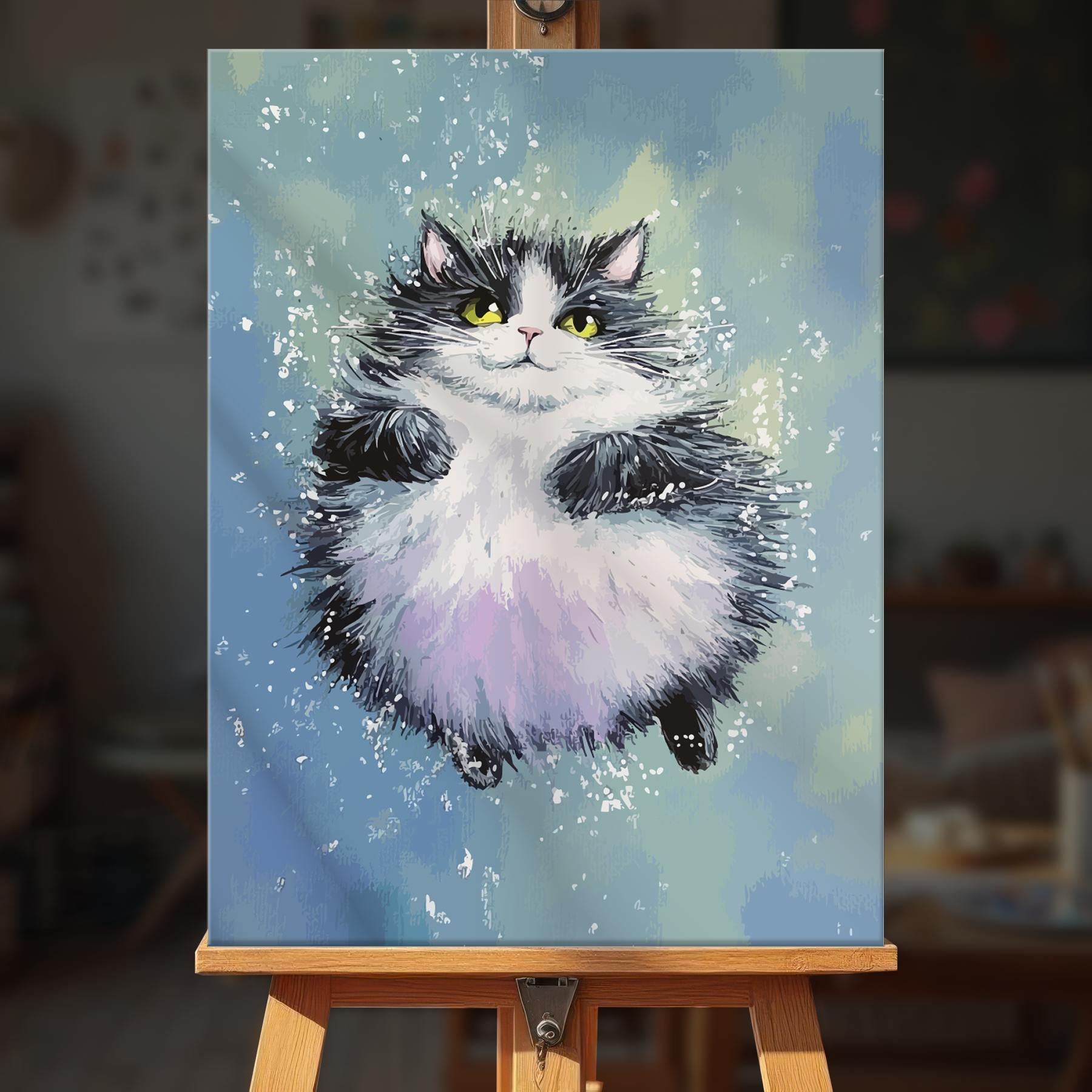 The canvas is pre-stretched on a wooden frame — ready to hang when finished.