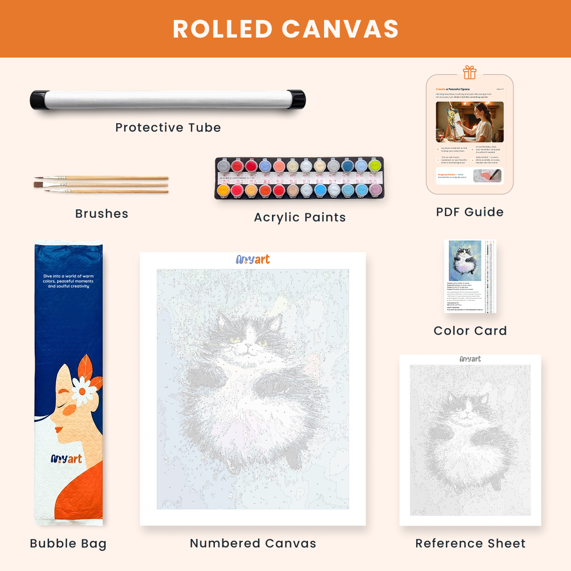 - Premium acrylic paint set (pre-mixed and numbered)