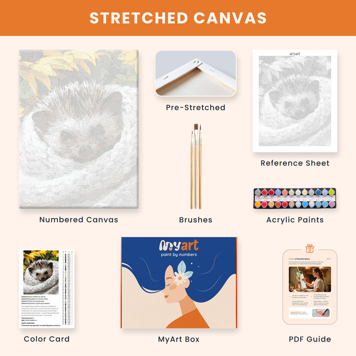 - Premium acrylic paint set (pre-mixed and numbered)