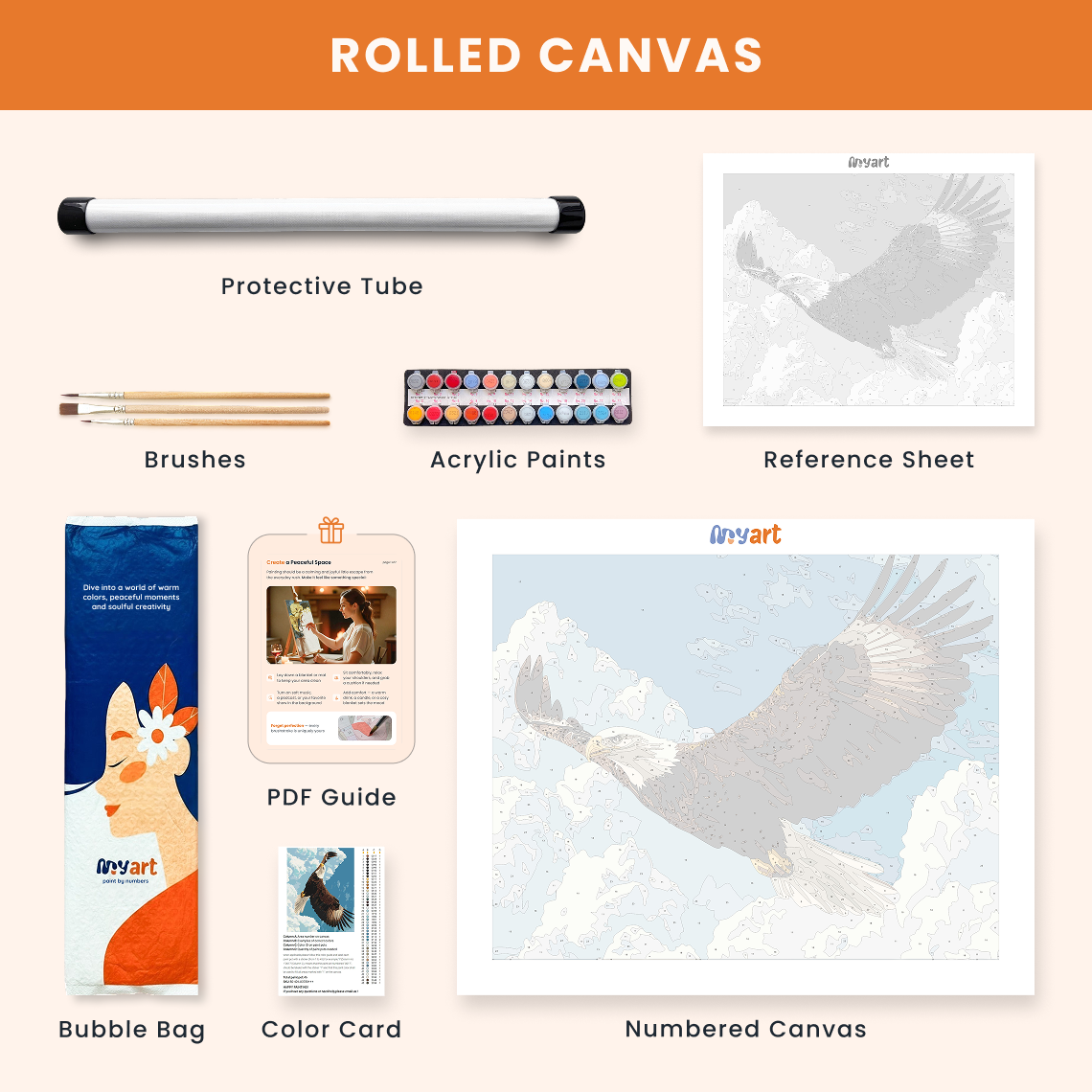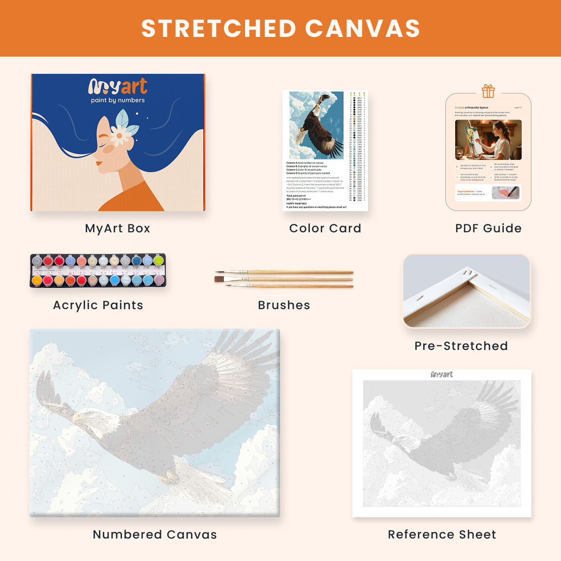 - Premium acrylic paint set (pre-mixed and numbered)