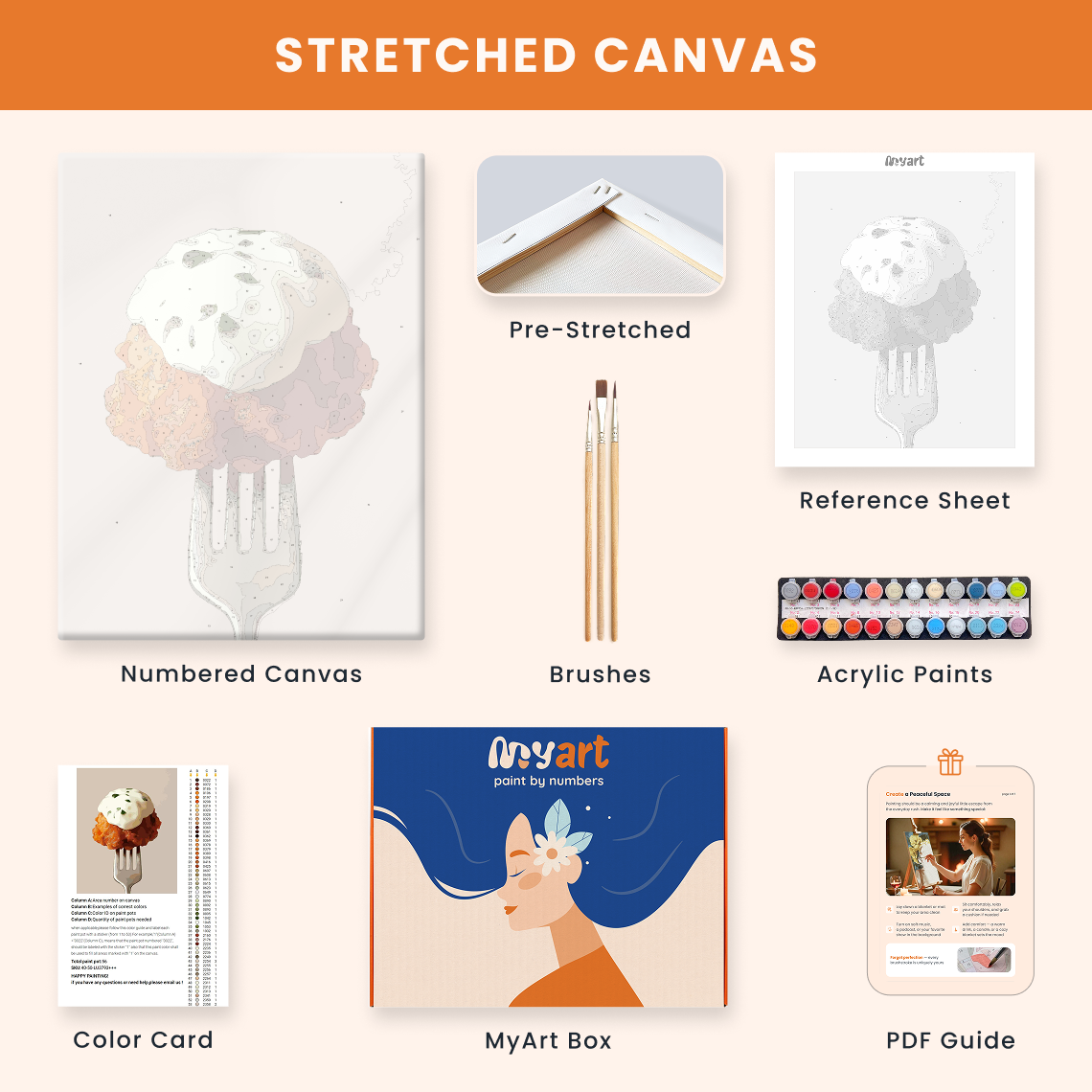 - Premium acrylic paint set (pre-mixed and numbered)
