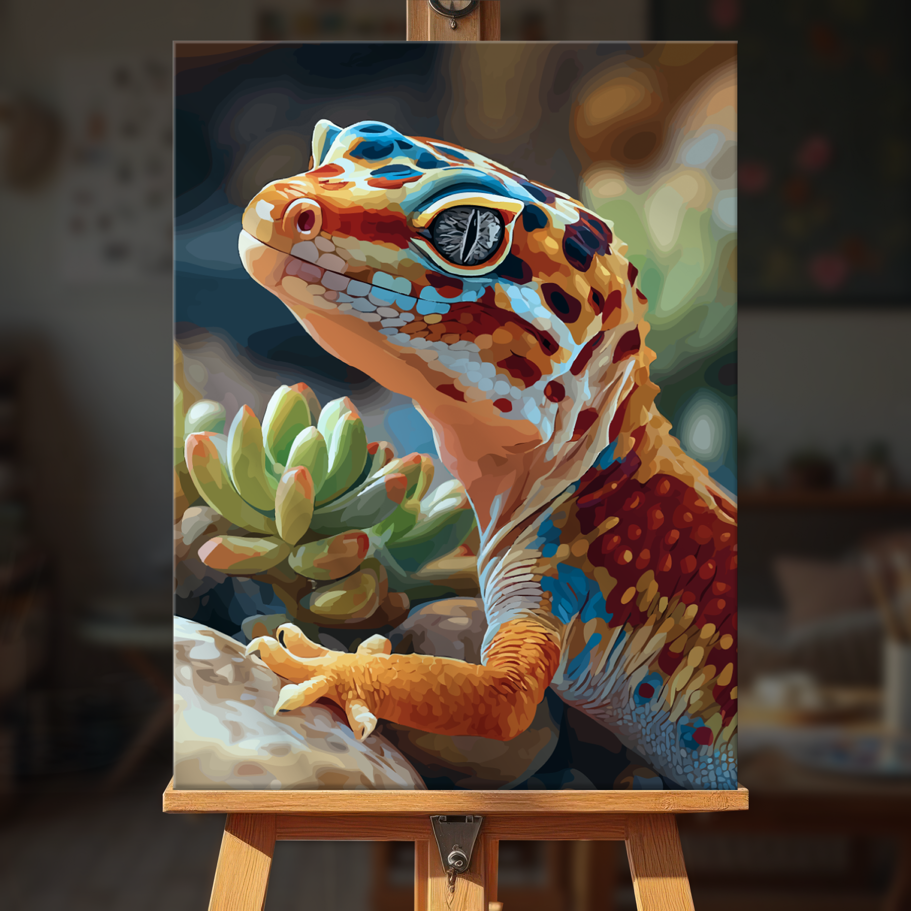 The canvas is pre-stretched on a wooden frame — ready to hang when finished.