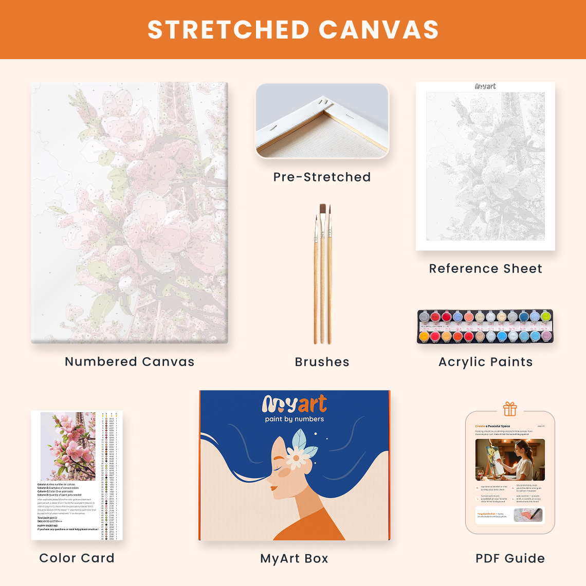 - Premium acrylic paint set (pre-mixed and numbered)