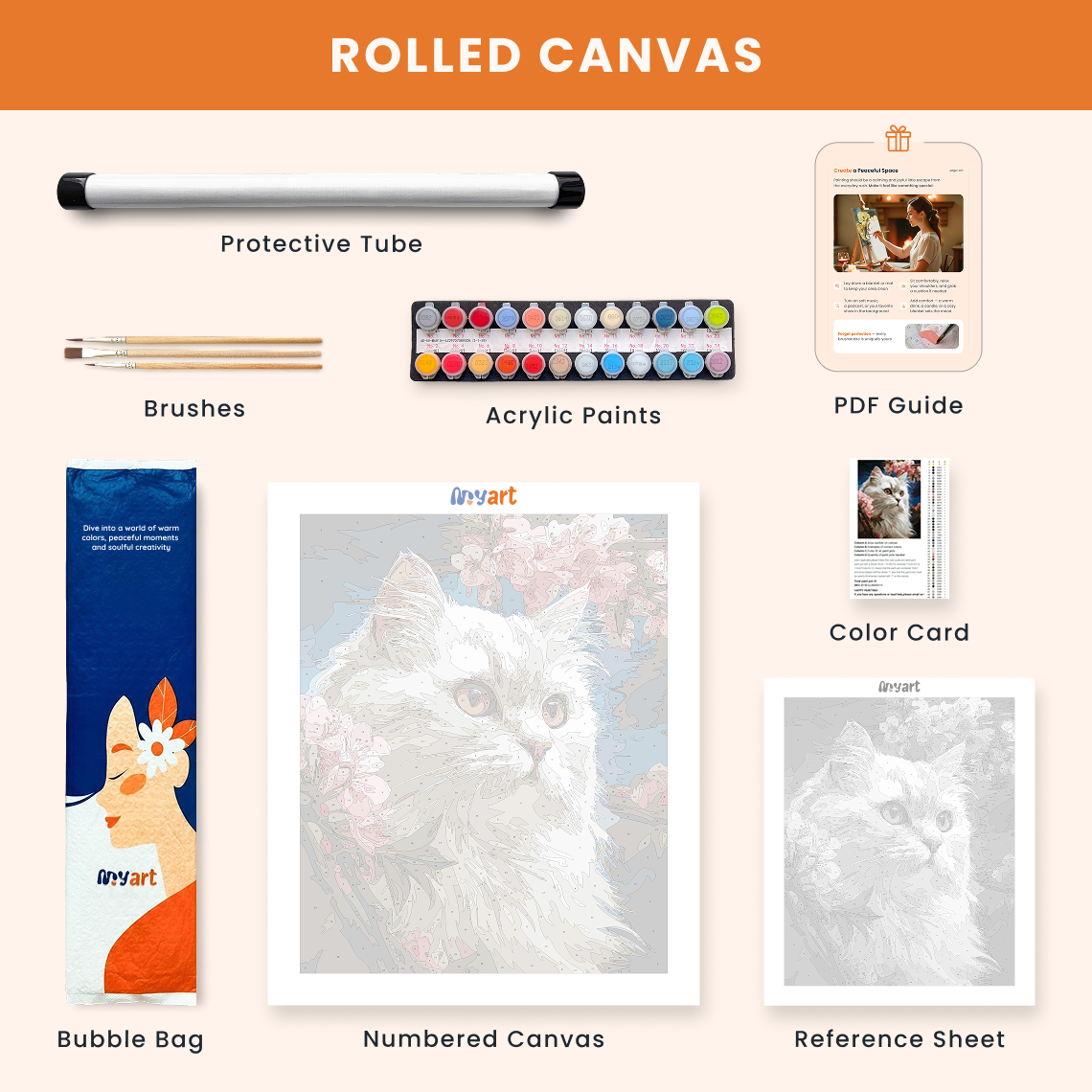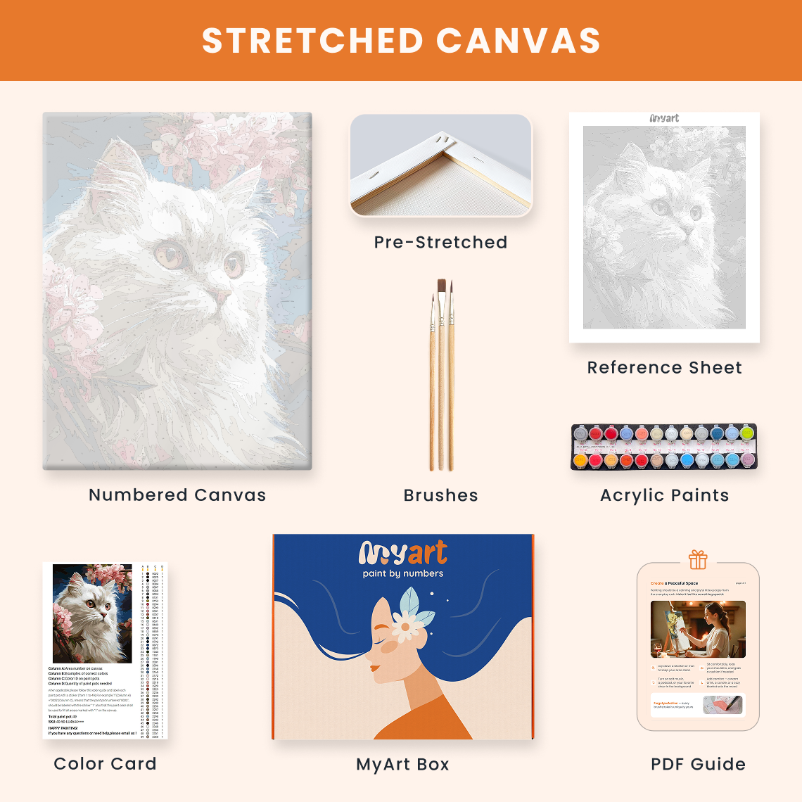 - Premium acrylic paint set (pre-mixed and numbered)