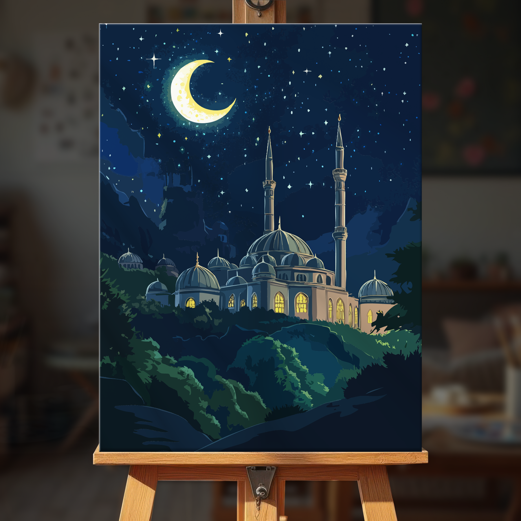 The canvas is pre-stretched on a wooden frame — ready to hang when finished.