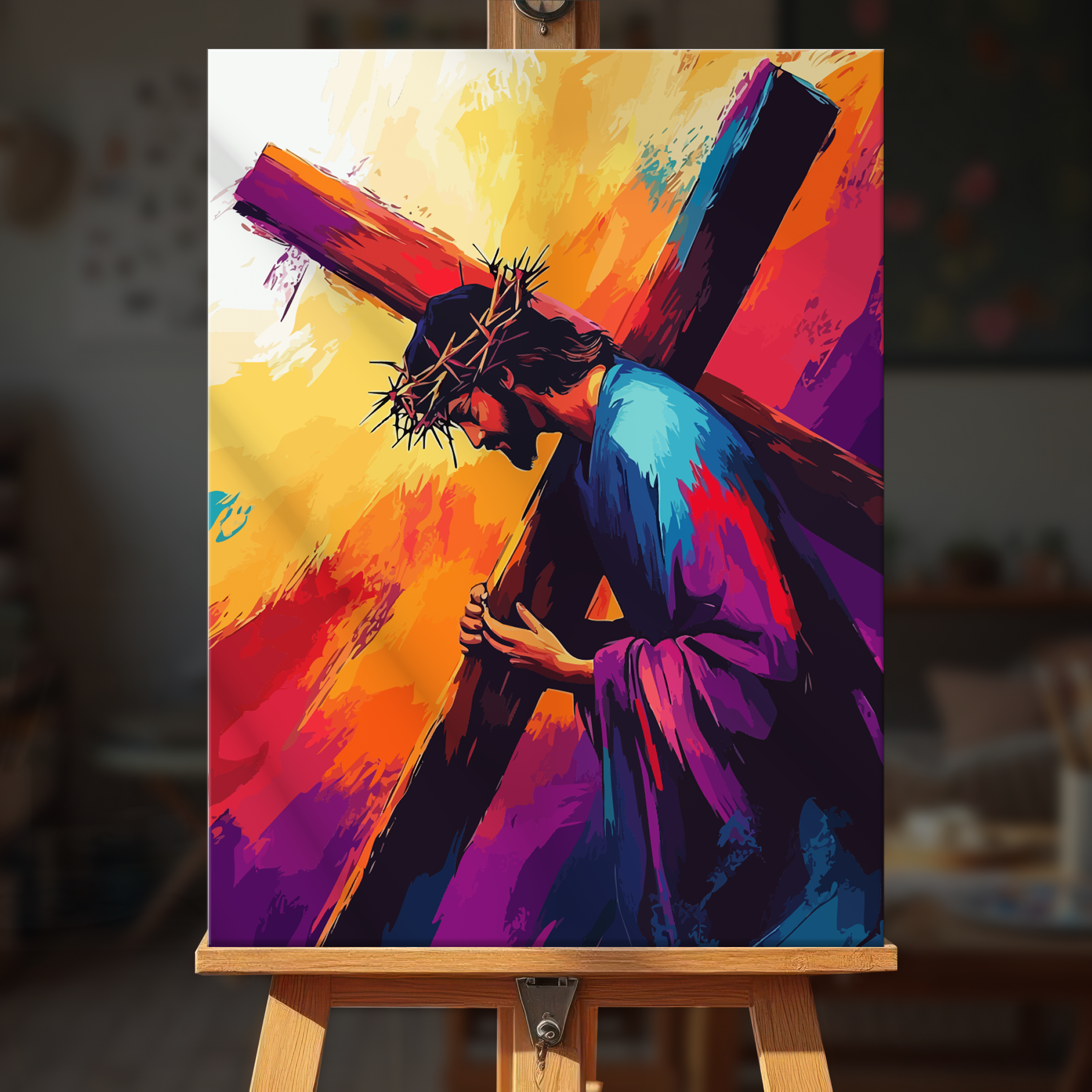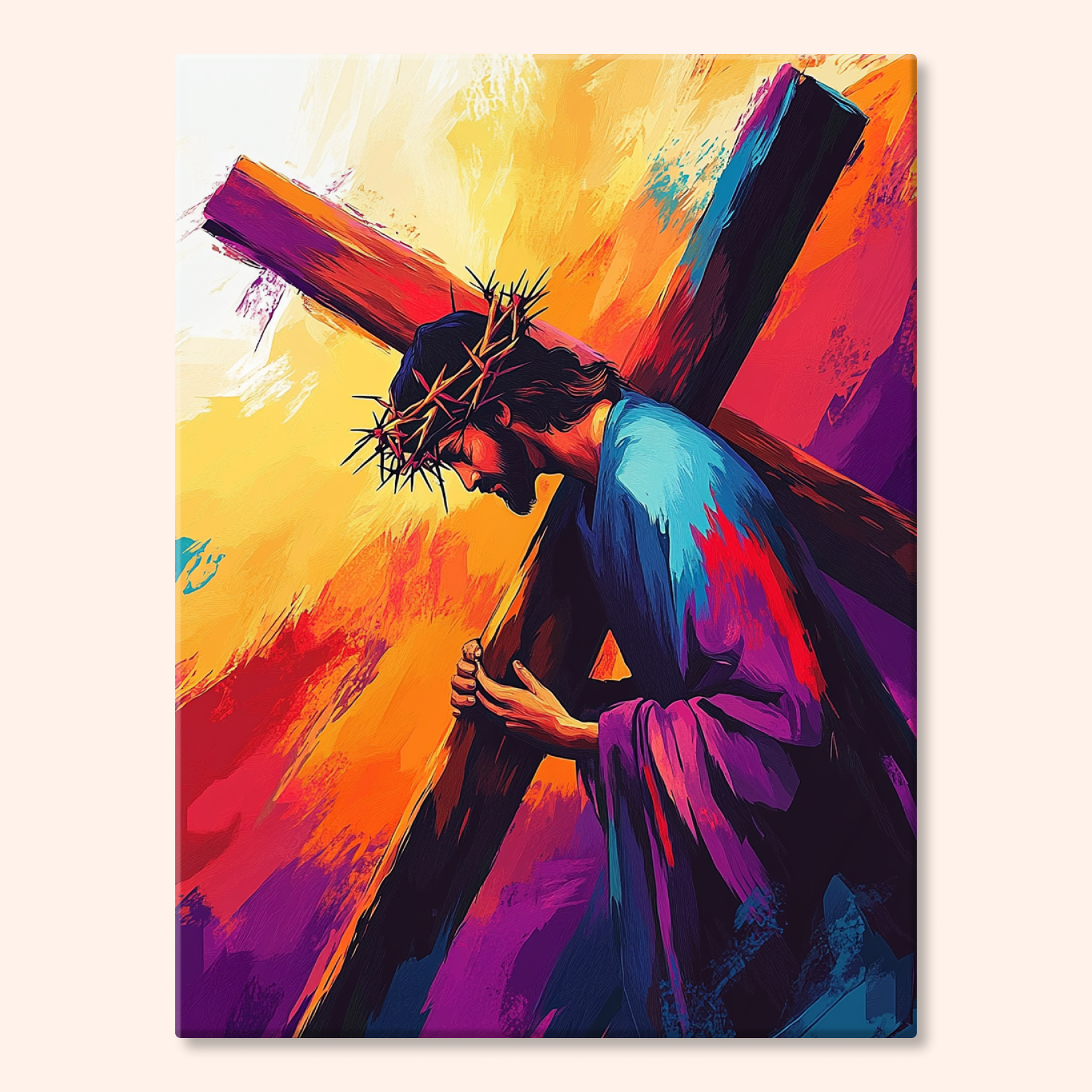 The canvas is pre-stretched on a wooden frame — ready to hang when finished.