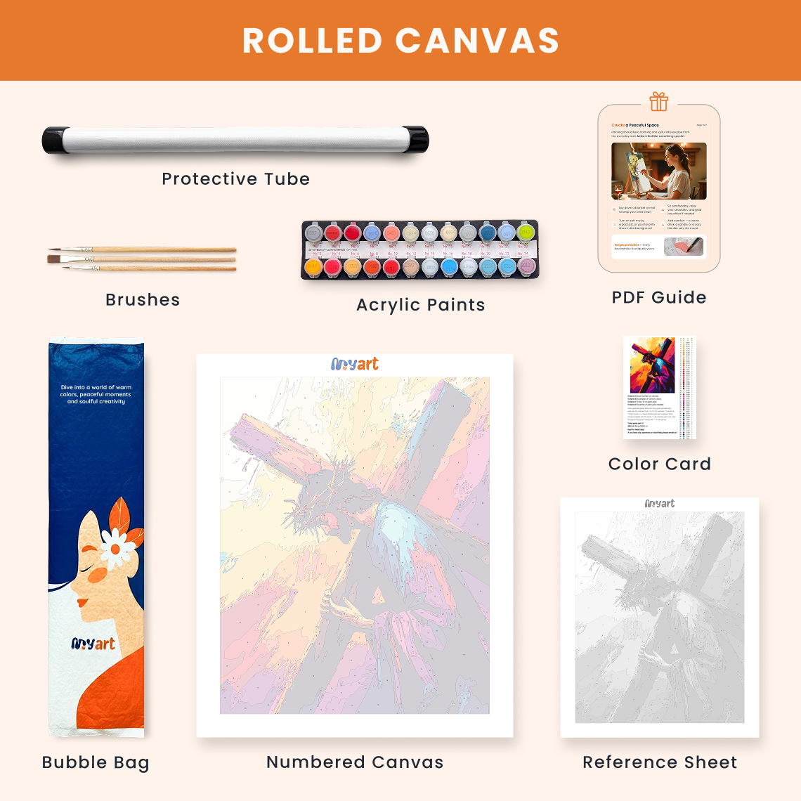 - Premium acrylic paint set (pre-mixed and numbered)