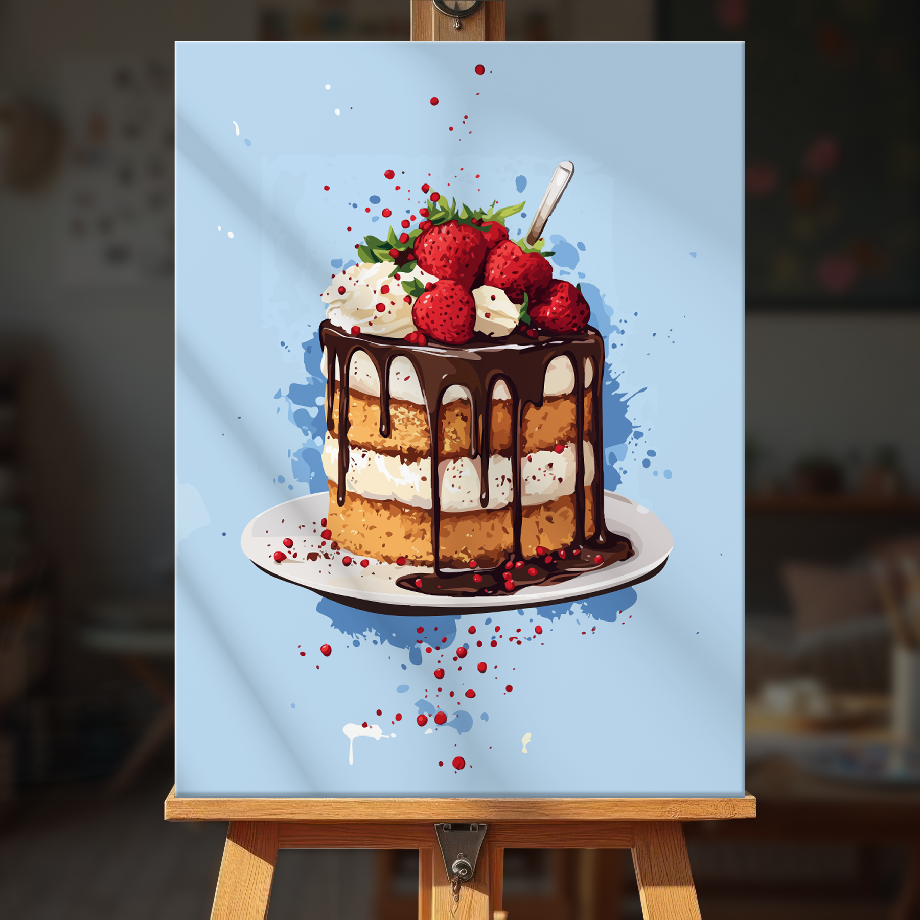 The canvas is pre-stretched on a wooden frame — ready to hang when finished.