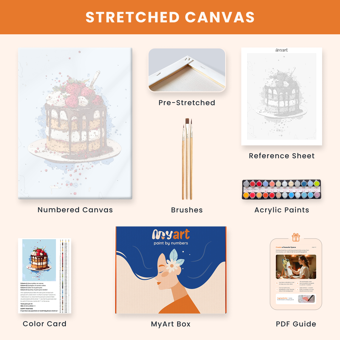 - Premium acrylic paint set (pre-mixed and numbered)