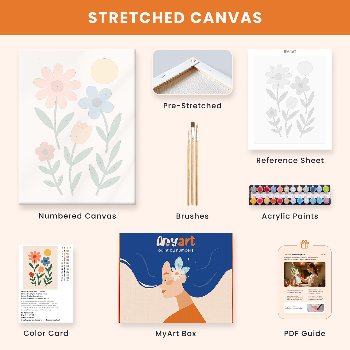 - Premium acrylic paint set (pre-mixed and numbered)