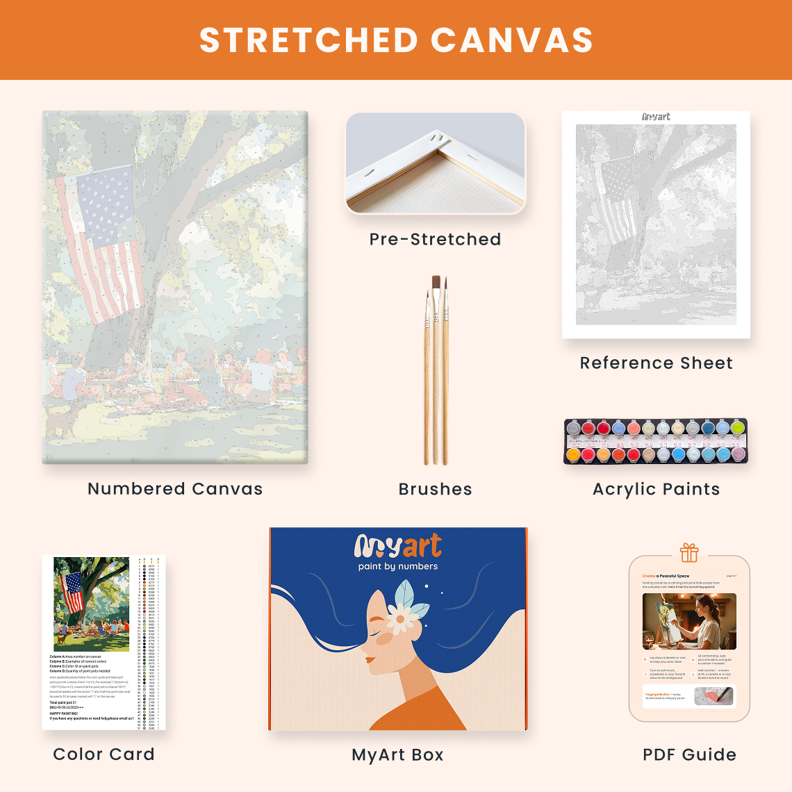 - Premium acrylic paint set (pre-mixed and numbered)