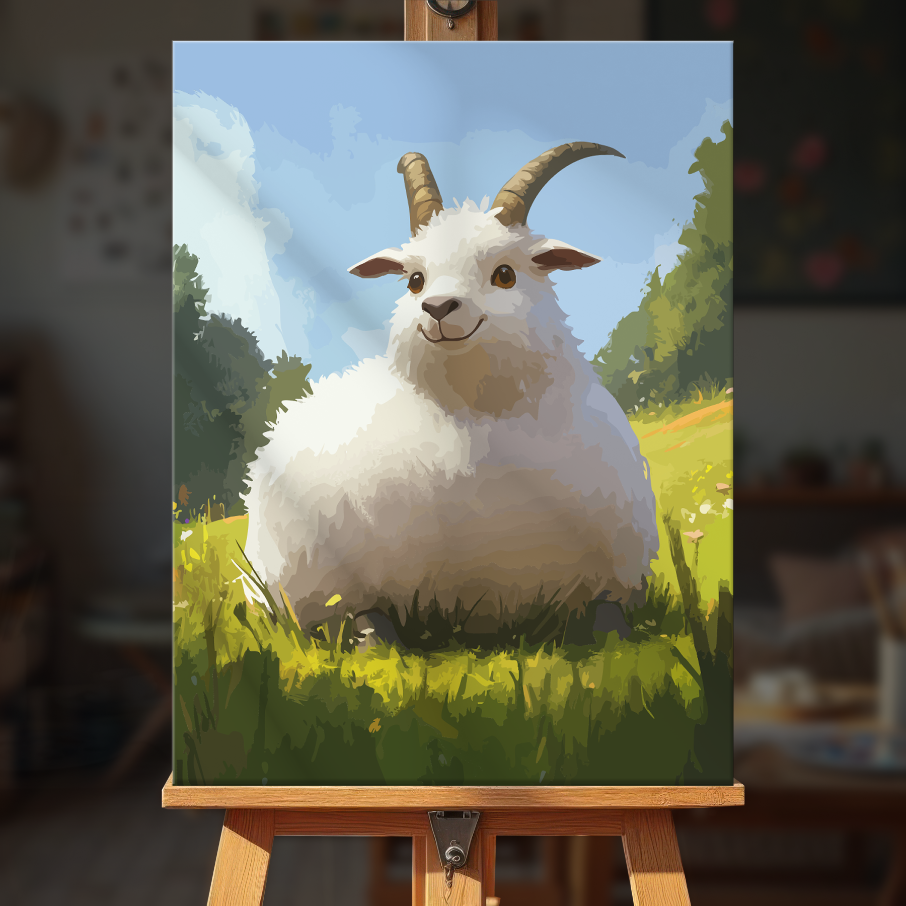 The canvas is pre-stretched on a wooden frame โ ready to hang when finished.