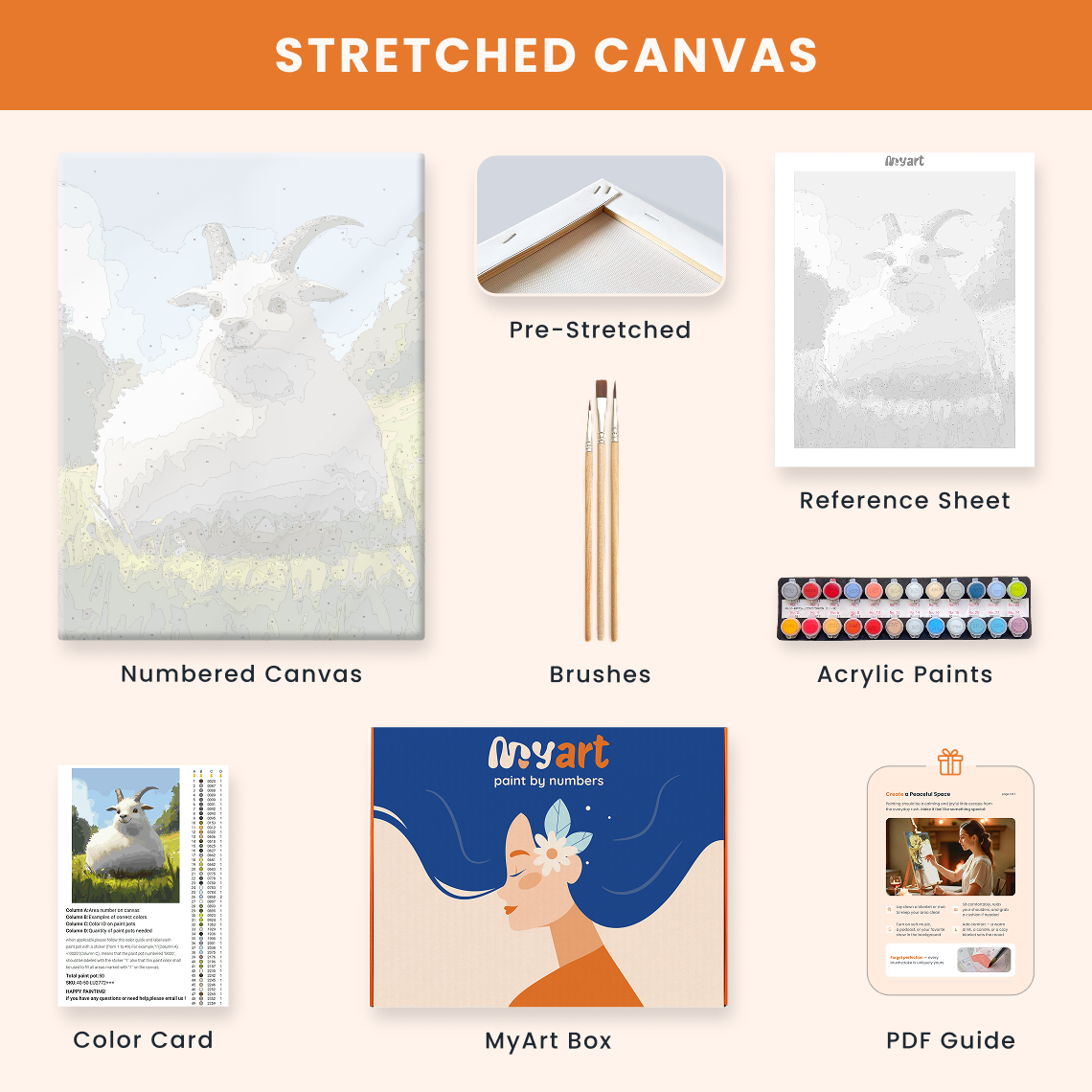 - Premium acrylic paint set (pre-mixed and numbered)