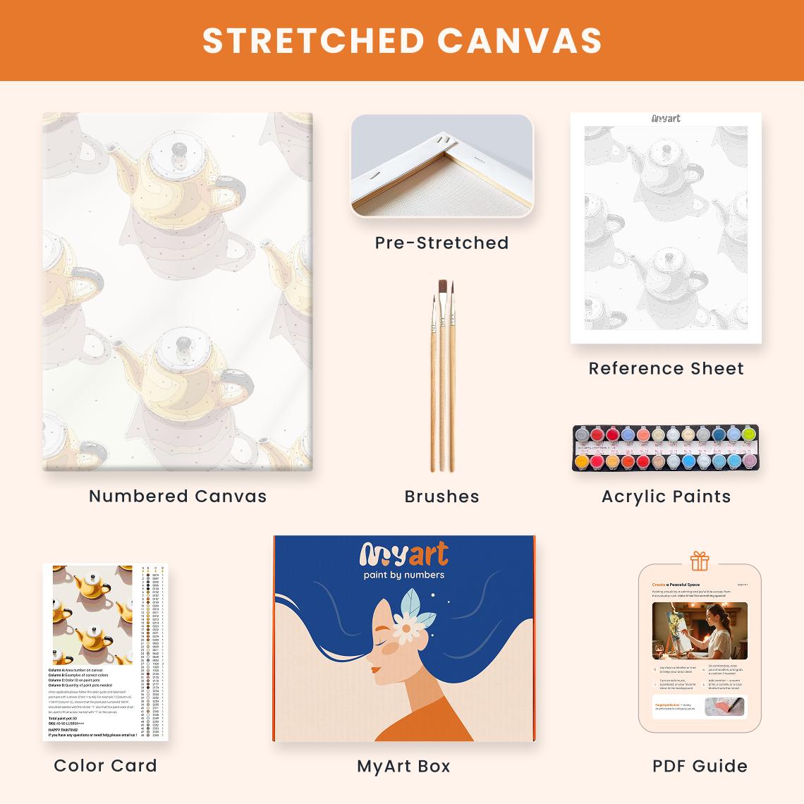 - Premium acrylic paint set (pre-mixed and numbered)