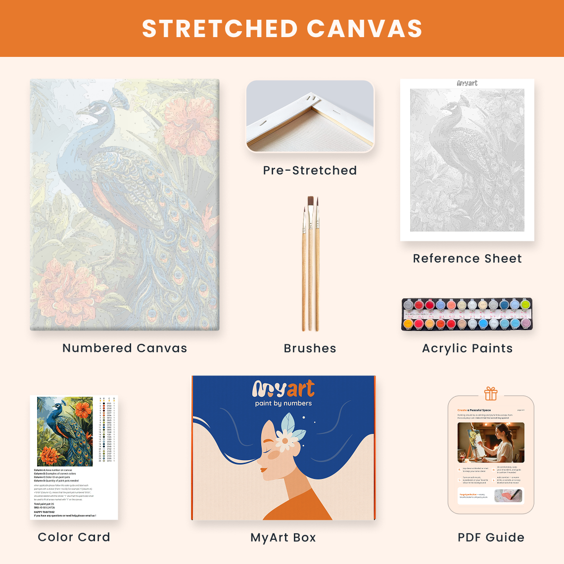 - Premium acrylic paint set (pre-mixed and numbered)