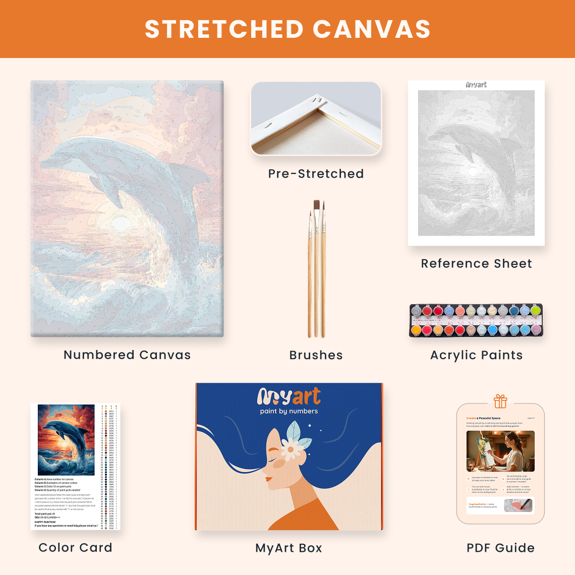 - Premium acrylic paint set (pre-mixed and numbered)