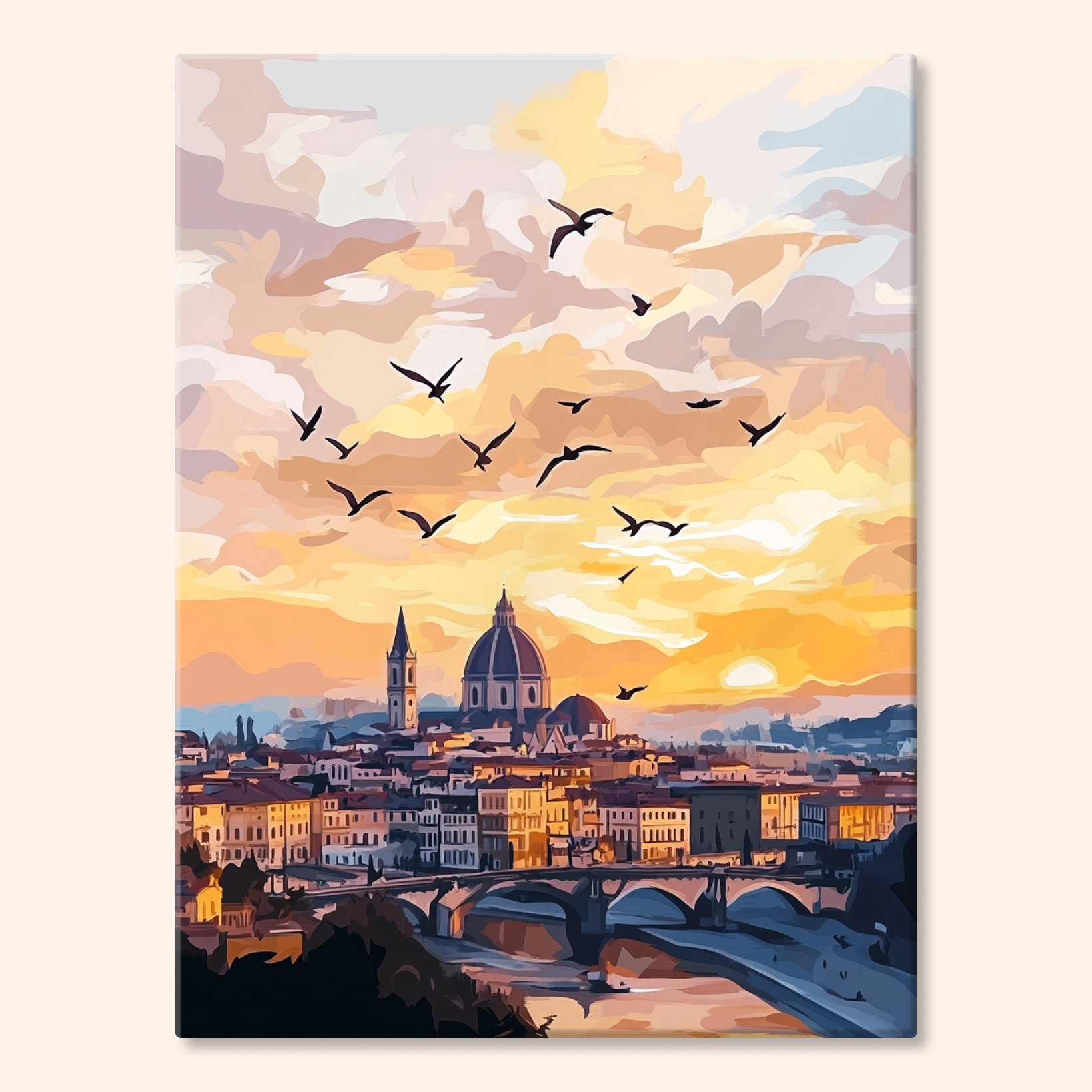 The canvas is pre-stretched on a wooden frame — ready to hang when finished.