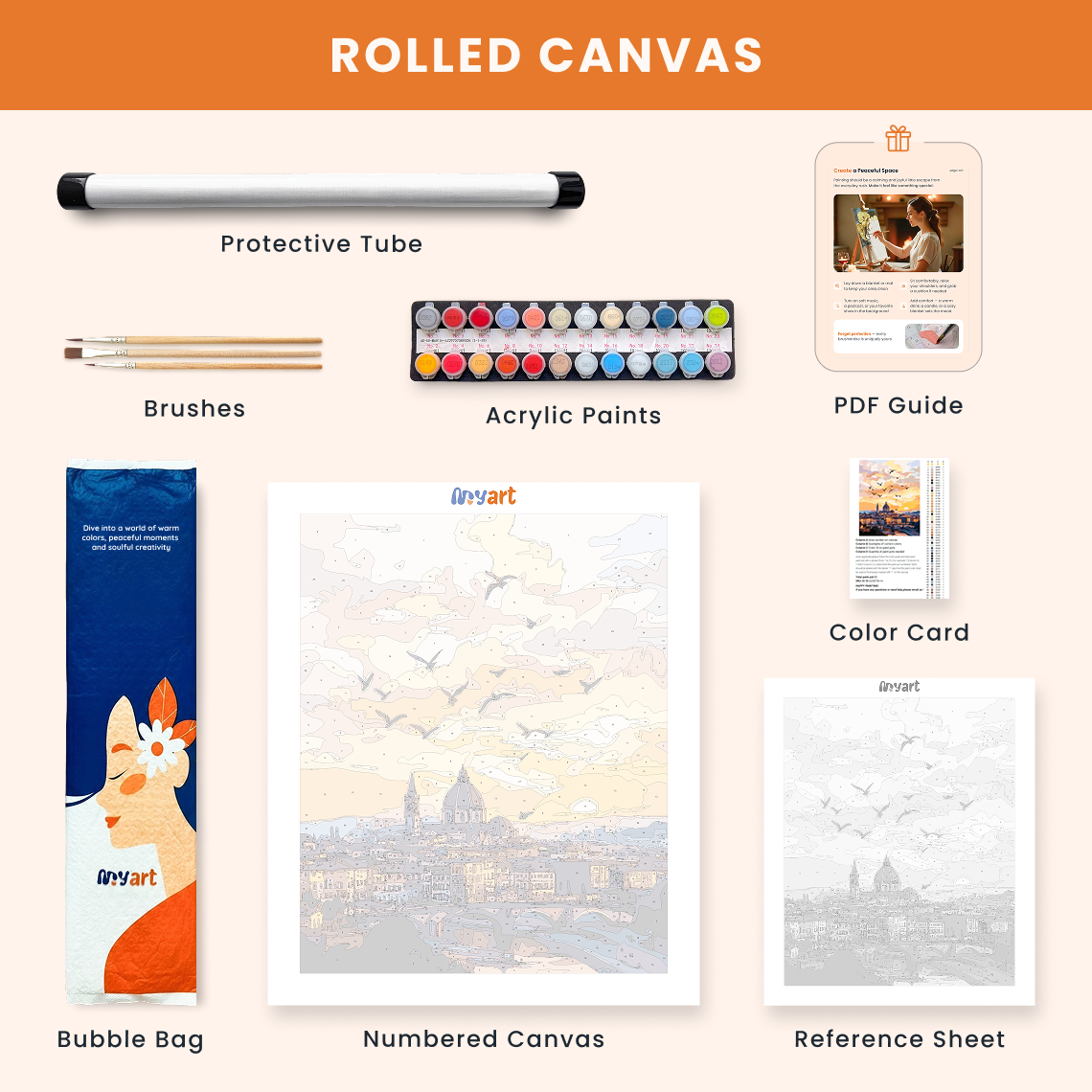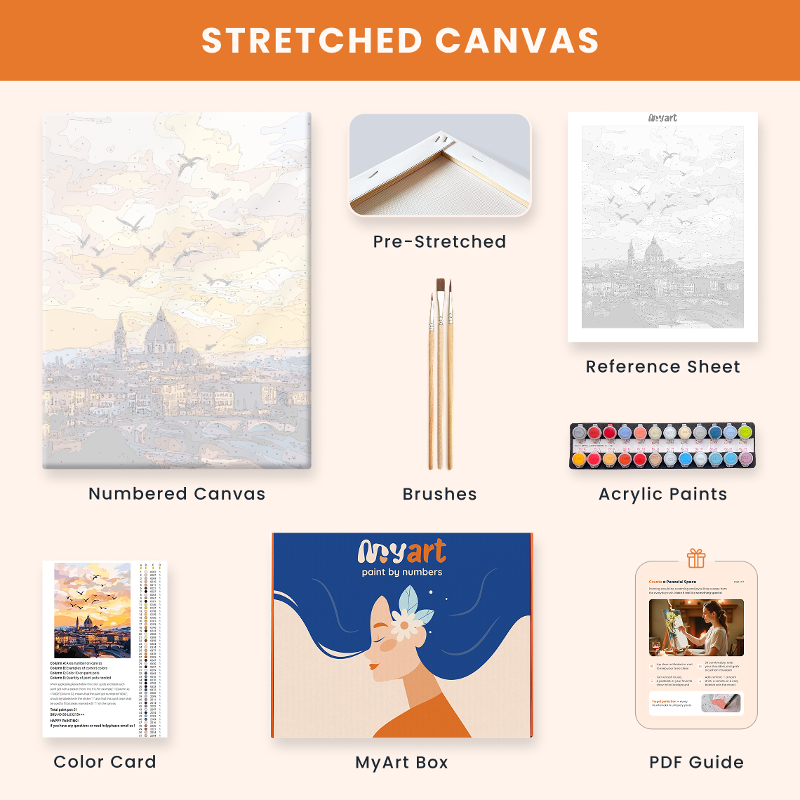 - Premium acrylic paint set (pre-mixed and numbered)