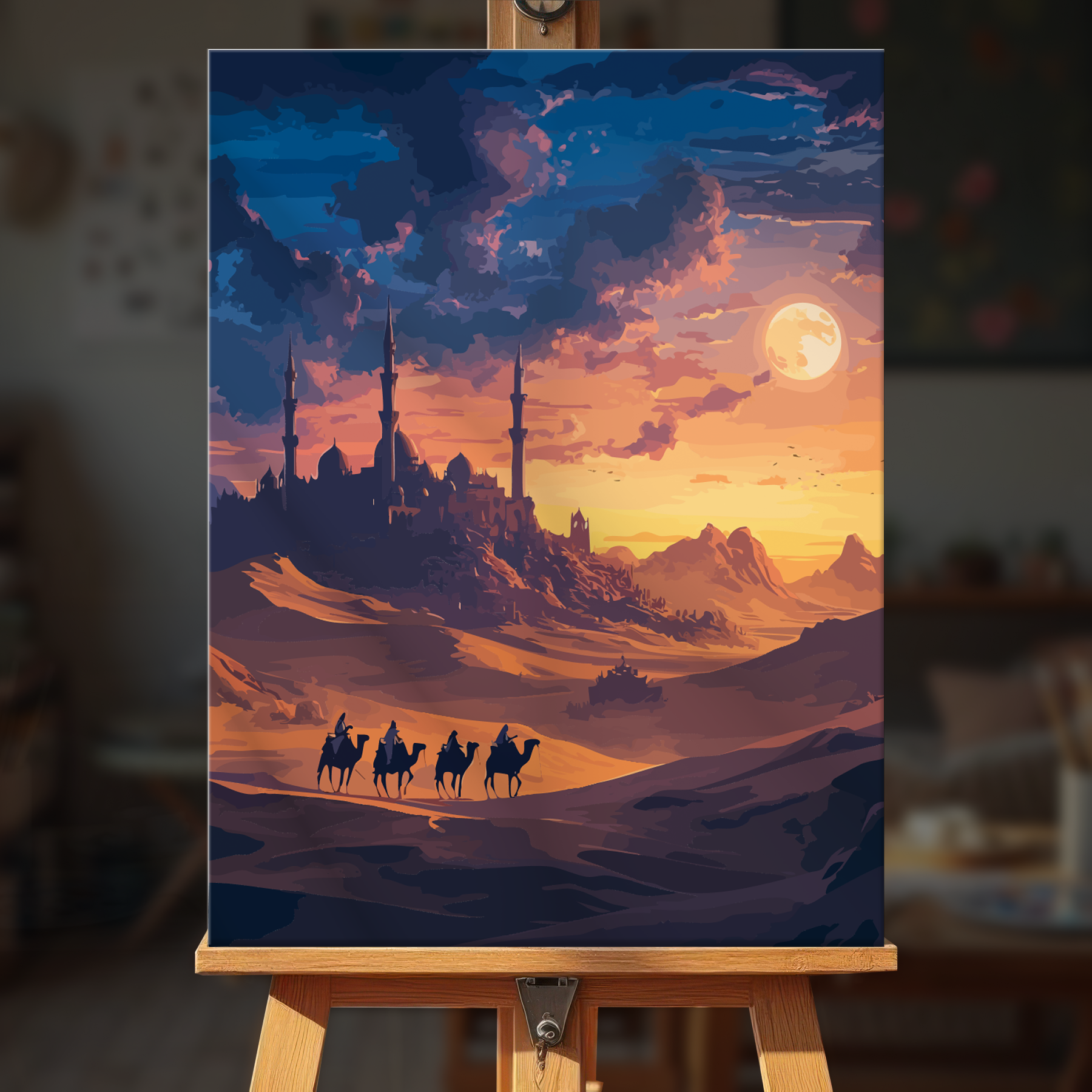 The canvas is pre-stretched on a wooden frame — ready to hang when finished.