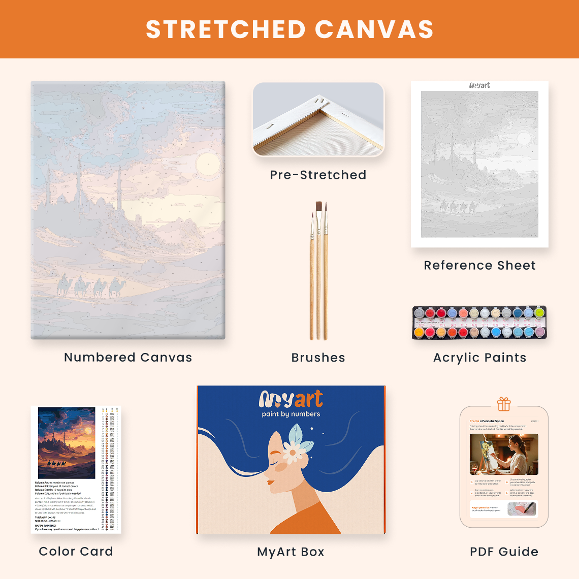 - Premium acrylic paint set (pre-mixed and numbered)