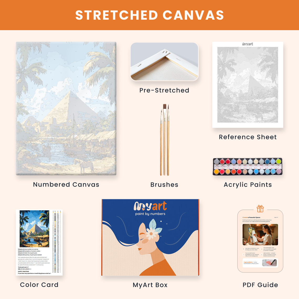 The canvas is pre-stretched on a wooden frame — ready to hang when finished.