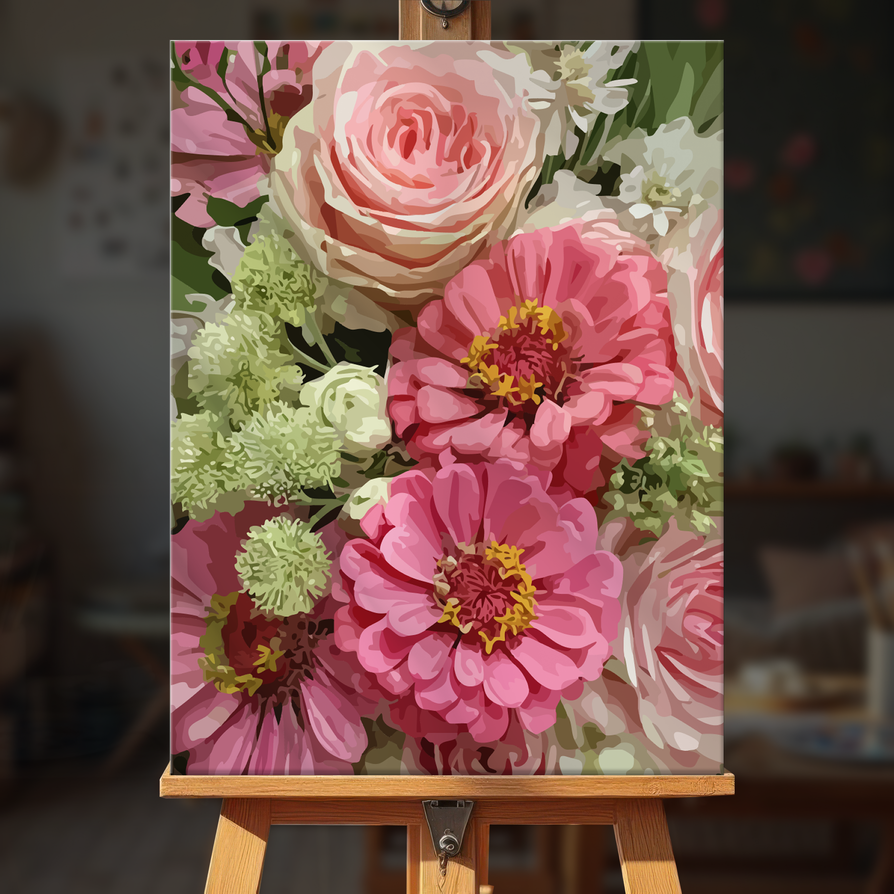 The canvas is pre-stretched on a wooden frame โ ready to hang when finished.