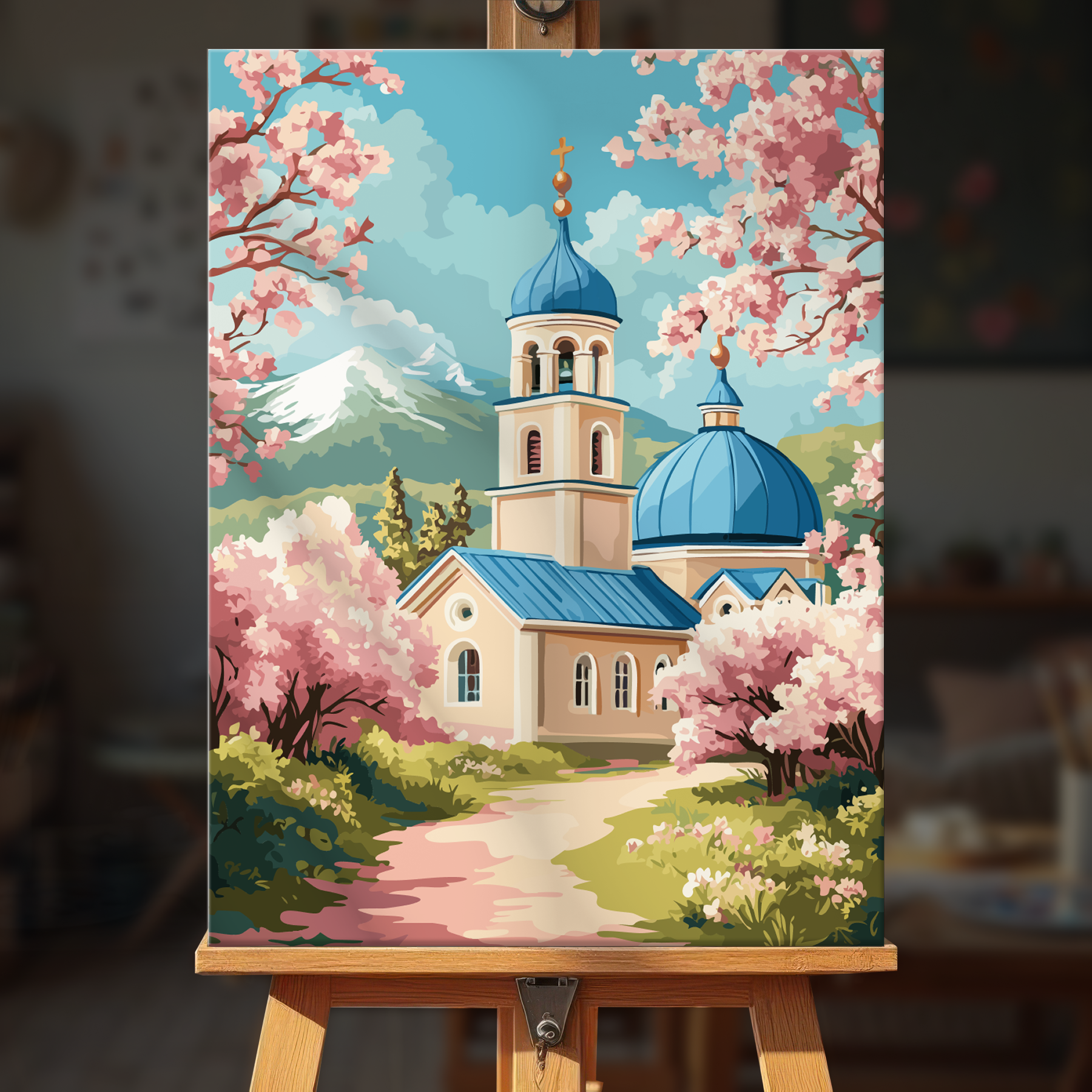 The canvas is pre-stretched on a wooden frame — ready to hang when finished.