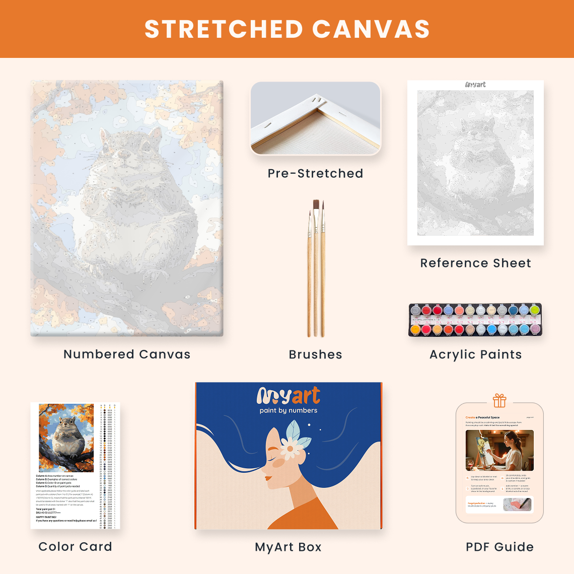 - Premium acrylic paint set (pre-mixed and numbered)