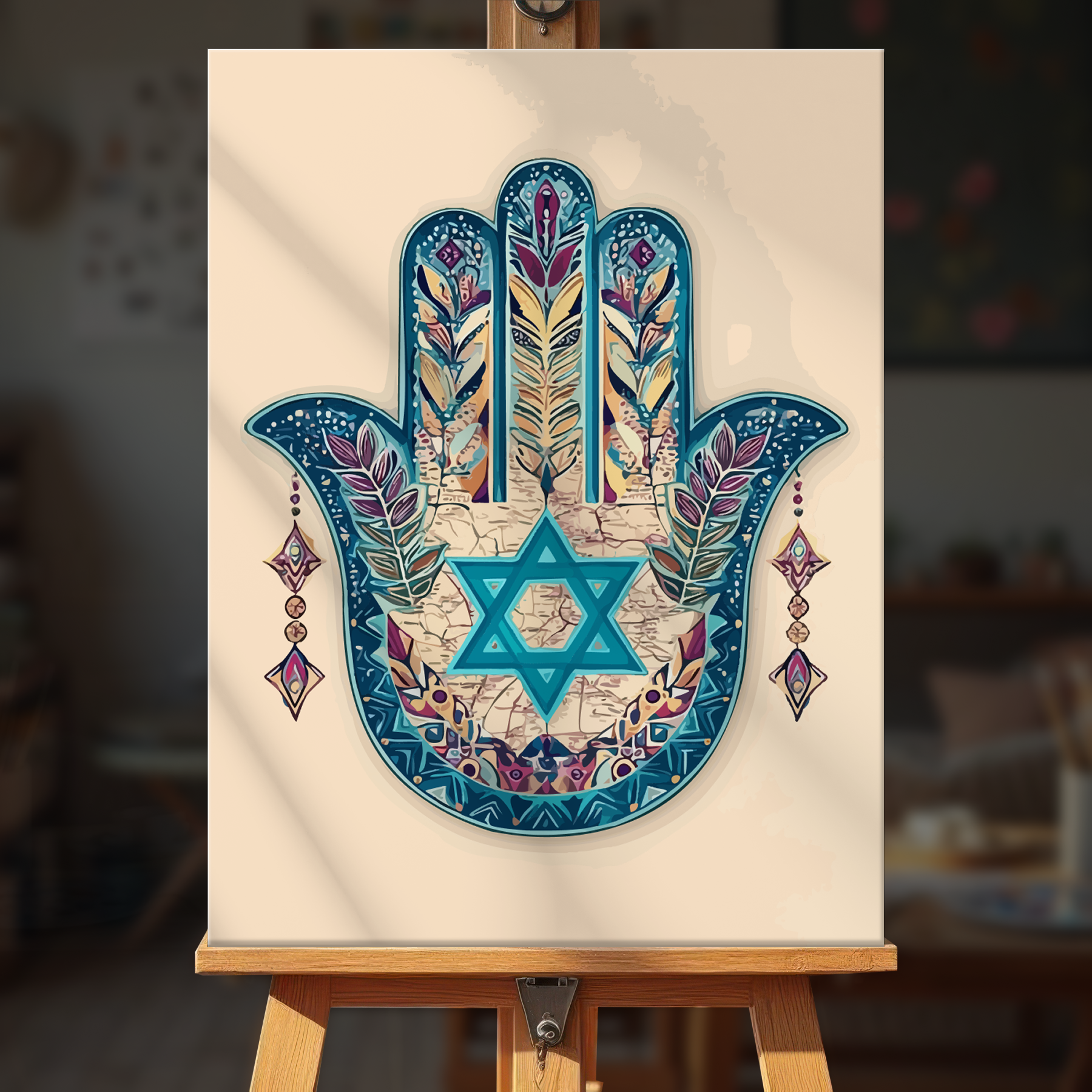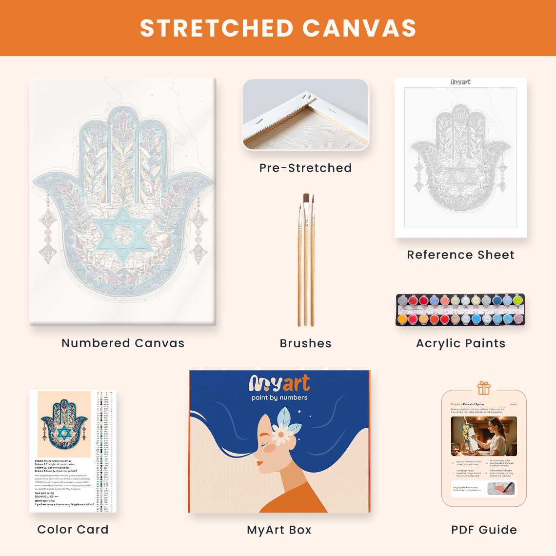 The canvas is pre-stretched on a wooden frame — ready to hang when finished.