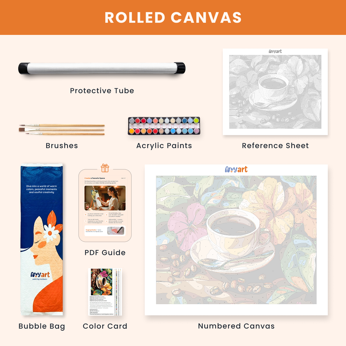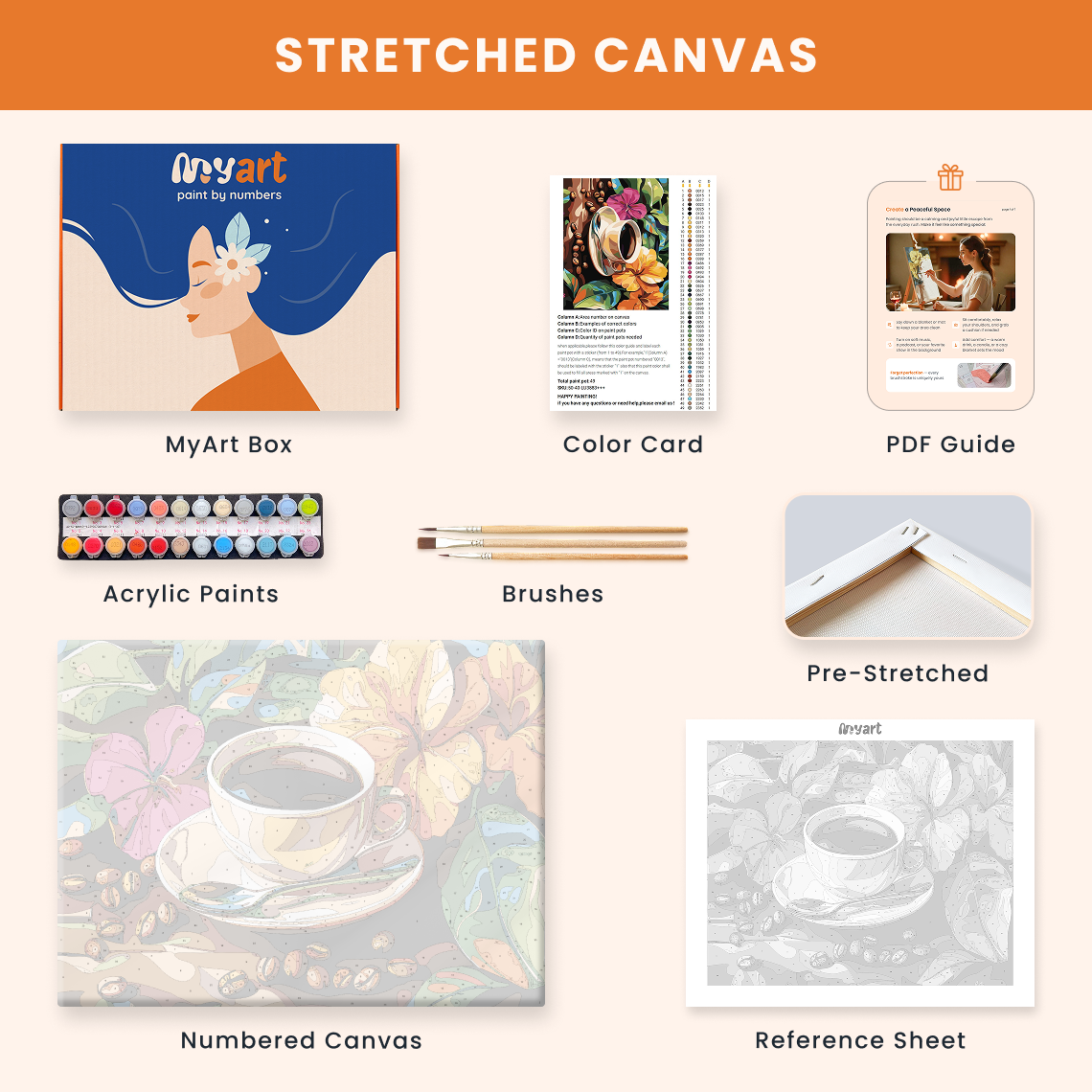 - Premium acrylic paint set (pre-mixed and numbered)
