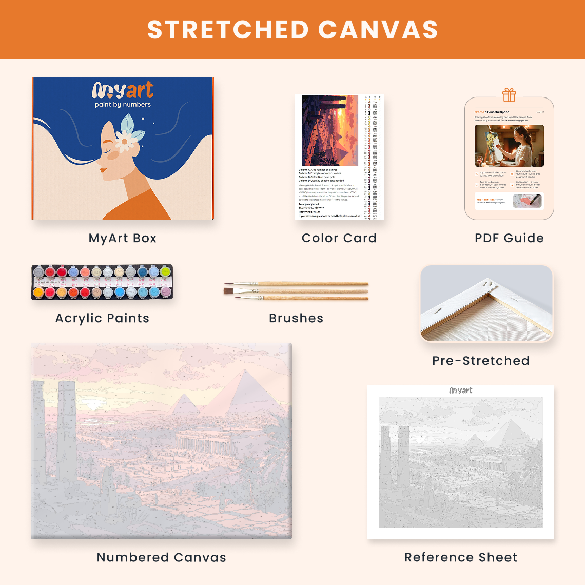 - Premium acrylic paint set (pre-mixed and numbered)