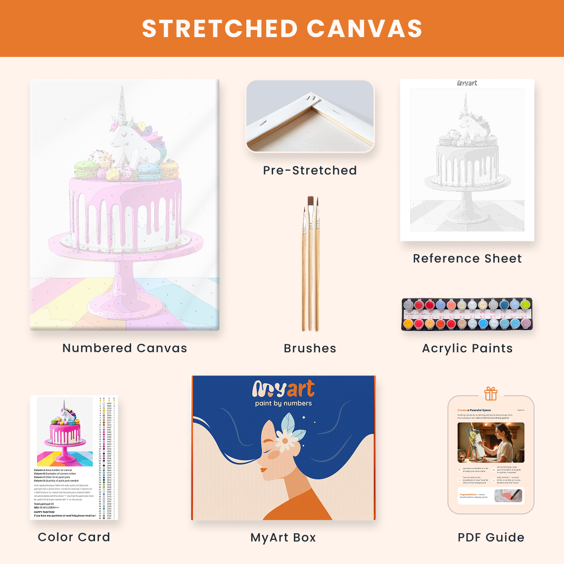 - Premium acrylic paint set (pre-mixed and numbered)