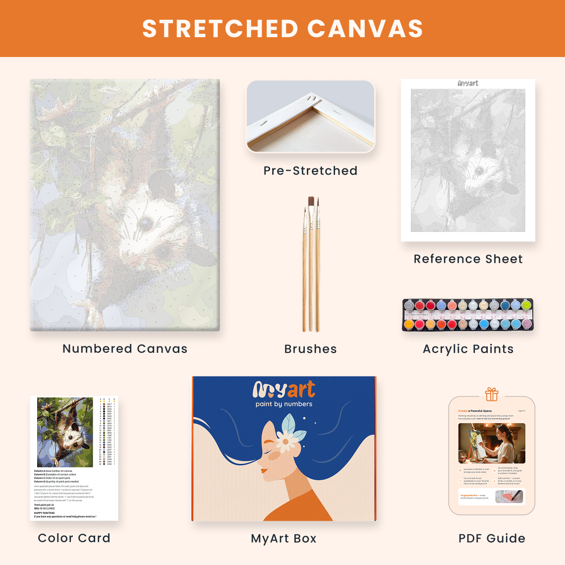 - Premium acrylic paint set (pre-mixed and numbered)
