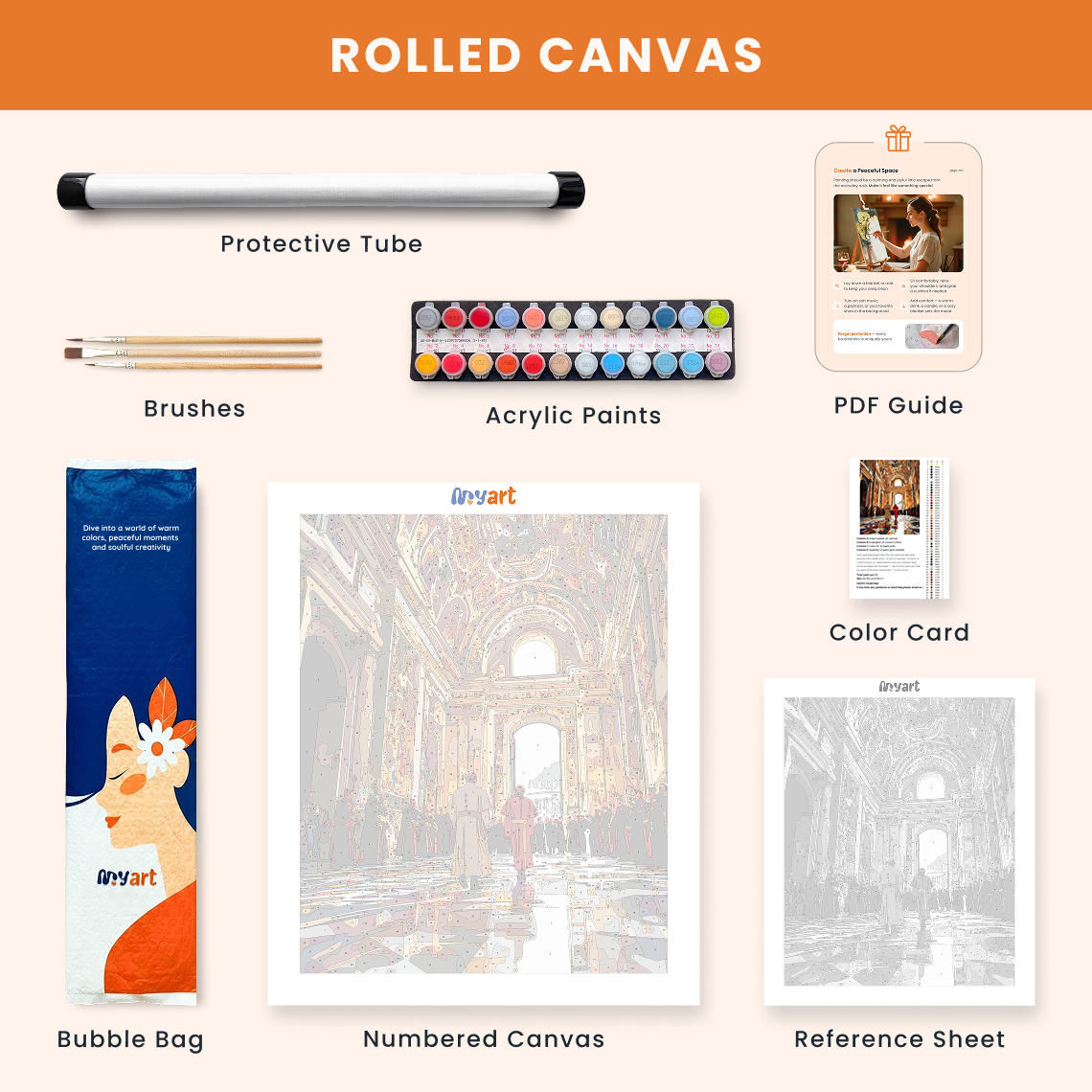 - Premium acrylic paint set (pre-mixed and numbered)