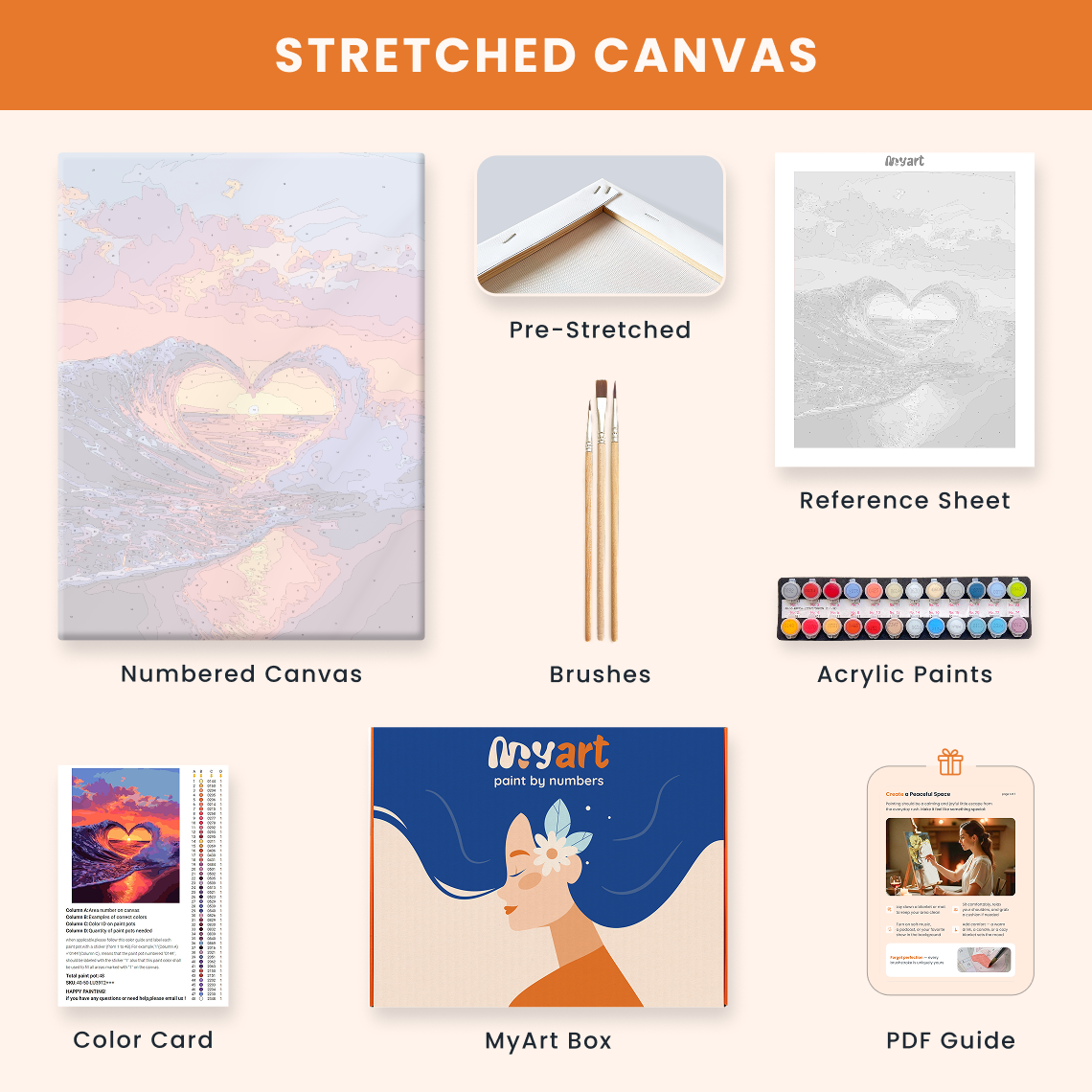 - Premium acrylic paint set (pre-mixed and numbered)