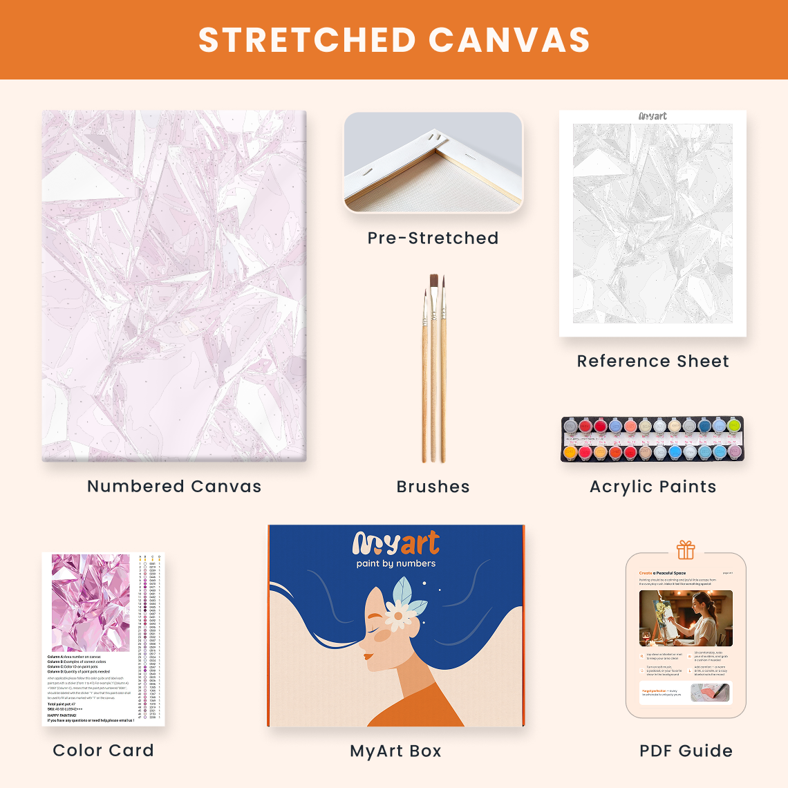 - Premium acrylic paint set (pre-mixed and numbered)