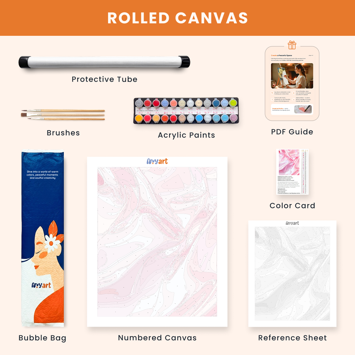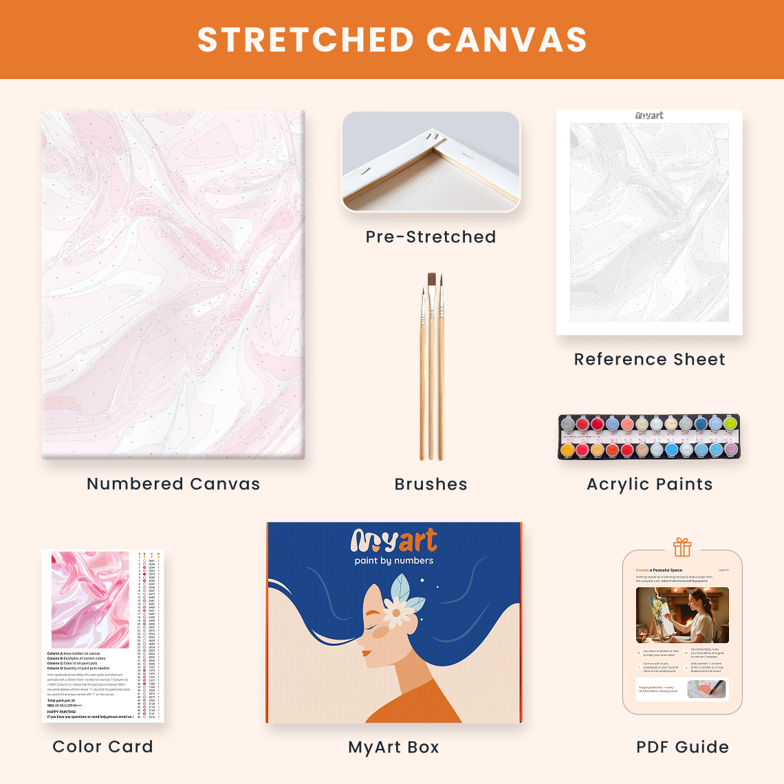 - Premium acrylic paint set (pre-mixed and numbered)